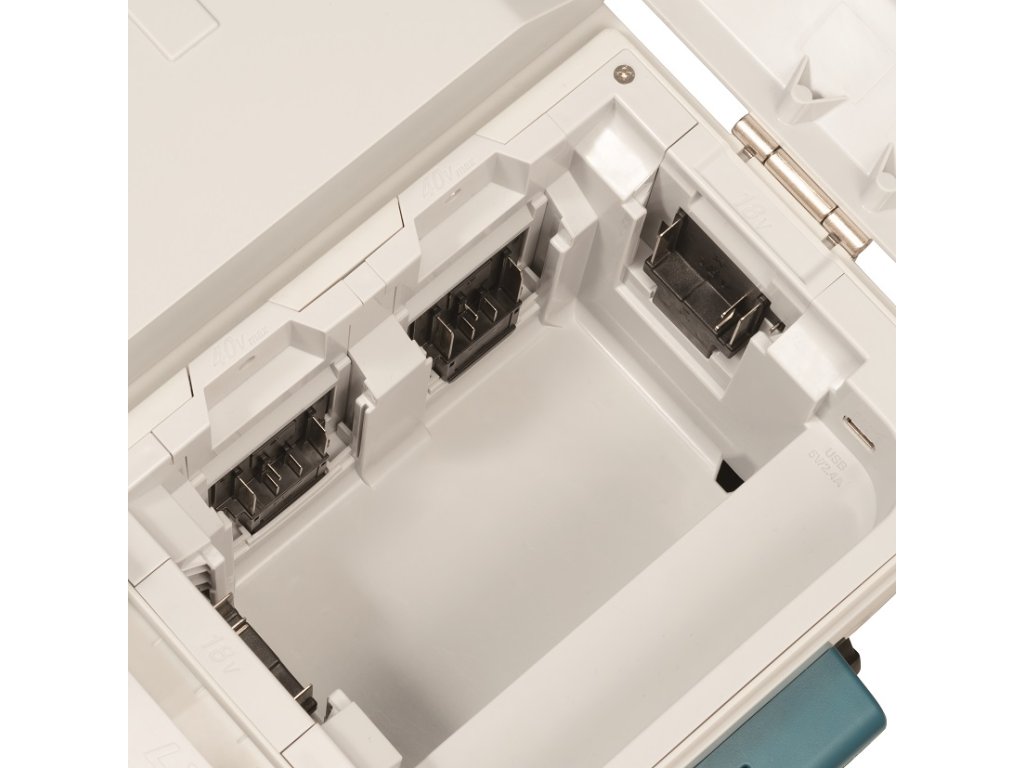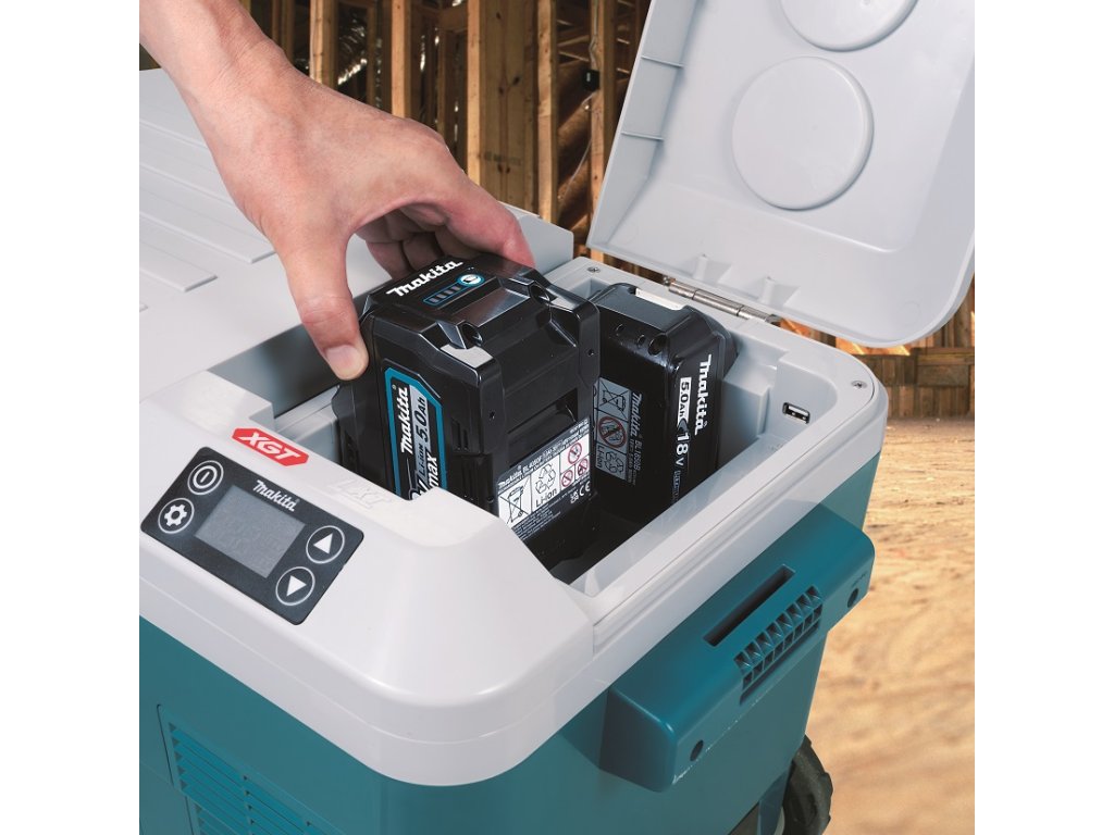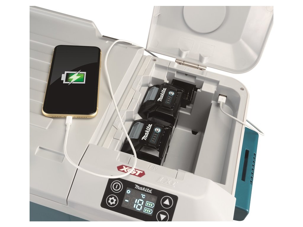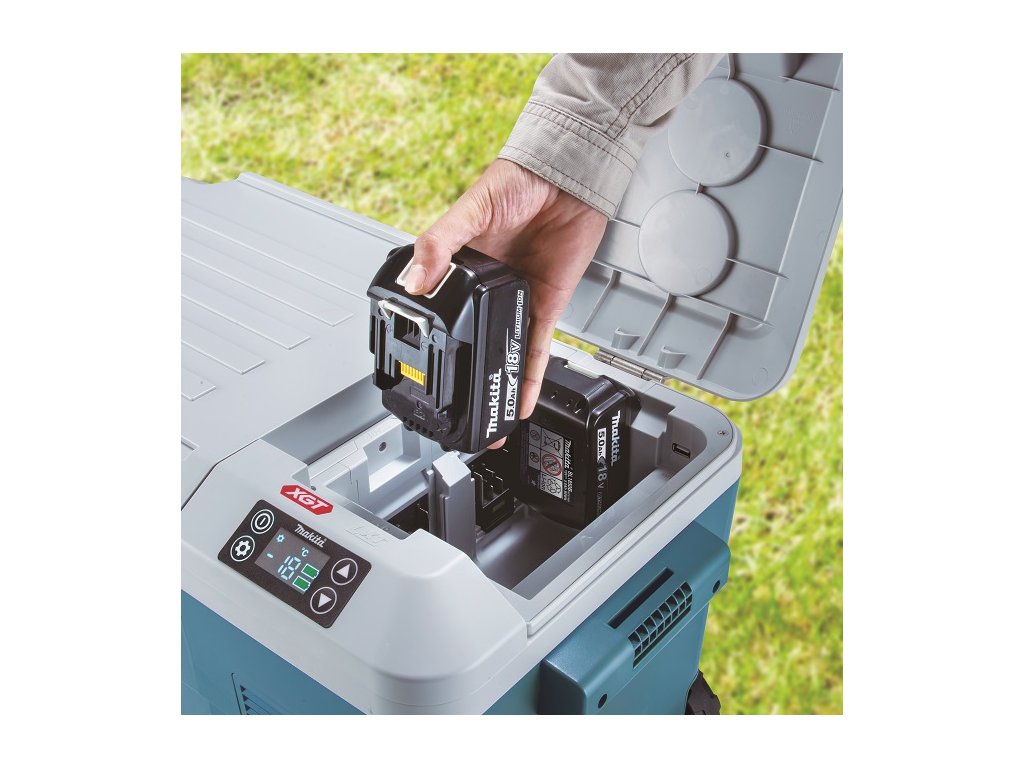 - Šikovný pomocník na cestách fungující na 2 akumulátory Li-ion XGT 40V, na 2 akumulátory Li-ion LXT18V, síťový adaptér nebo autokonektor 12V