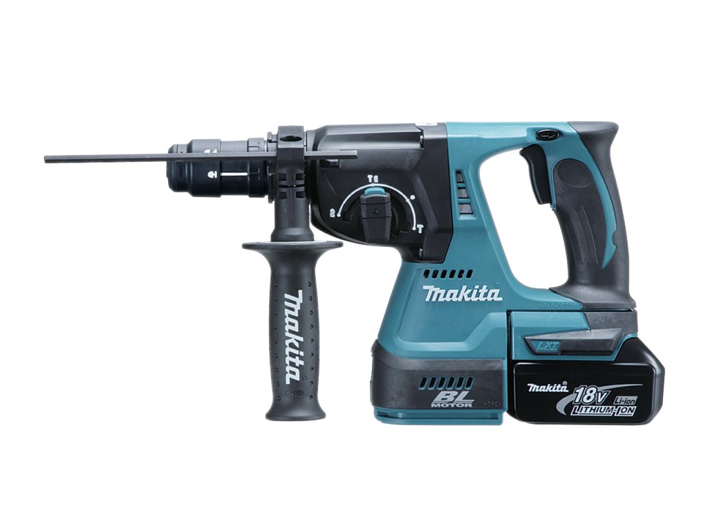 - Kombinované kladivo s bezuhlíkovým motorem umožňujícím delší práci na jedno nabití akumulátoru