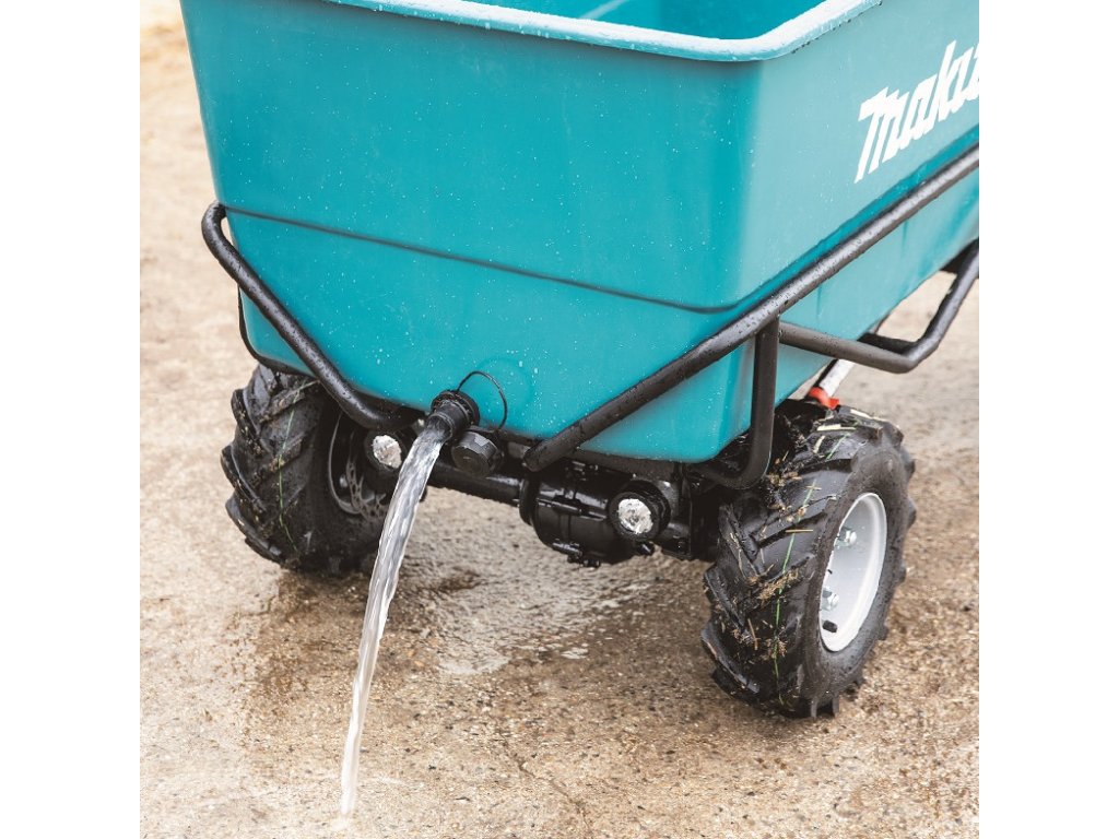 - Součástí dodávky je speciální plastová korba o objemu 295 l pro pevné materiály anebo 255 l pro kapaliny