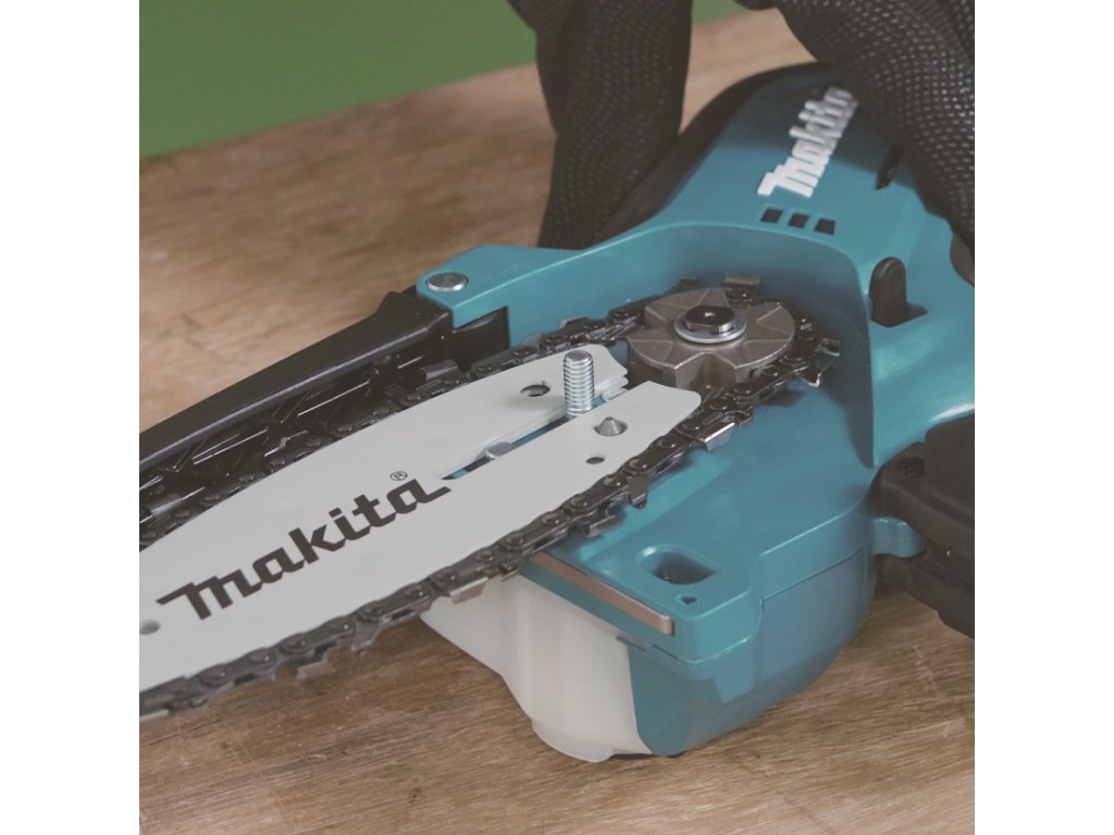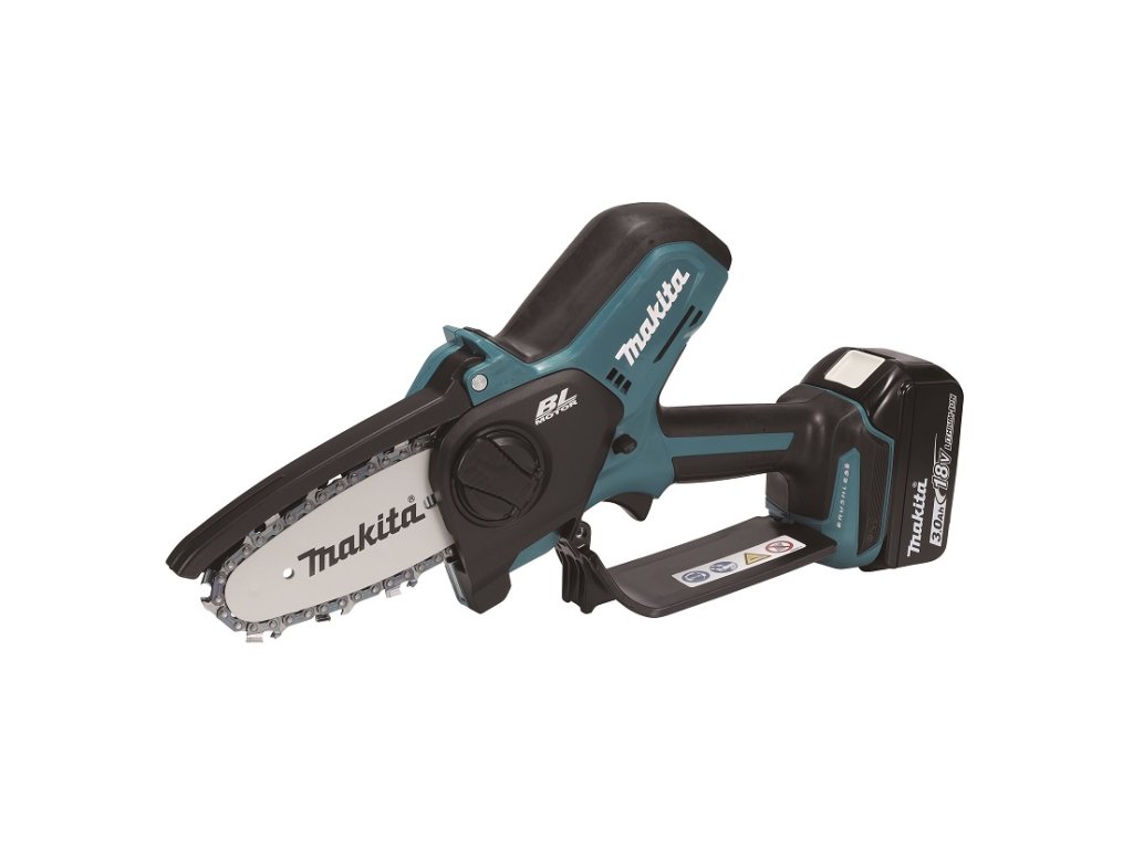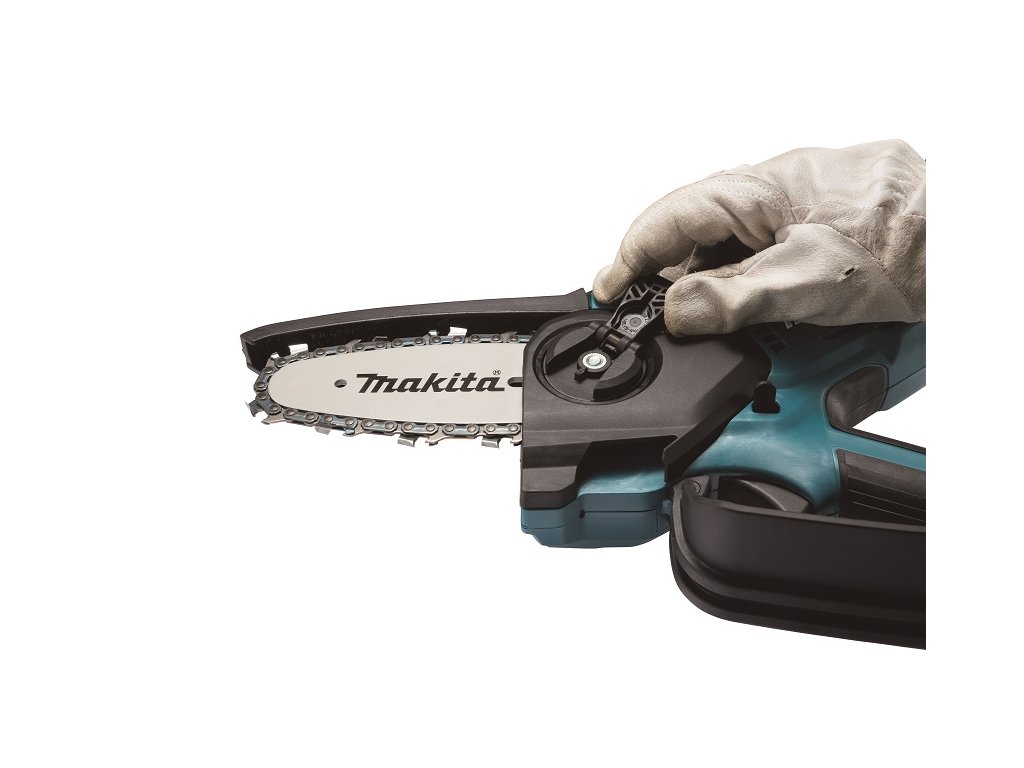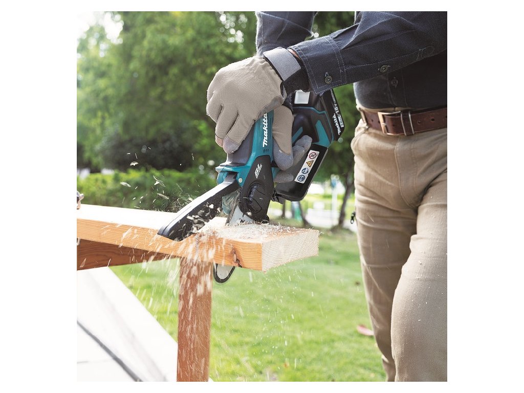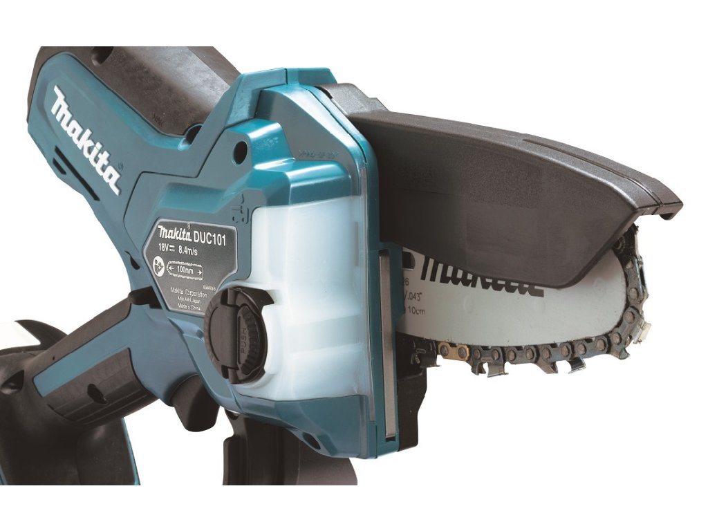 - Lehká a kompaktní prořezávací pila s lištou 100mm fungující na akumulátory Li-ion 18V