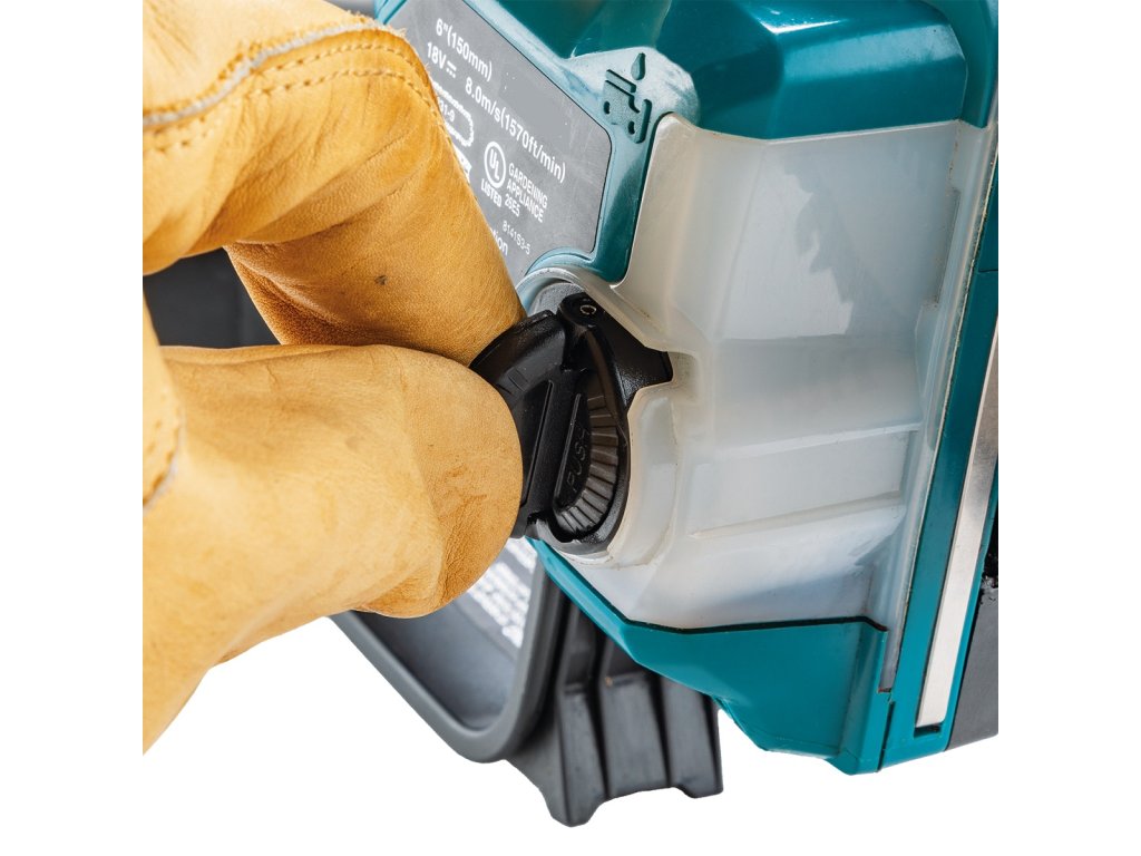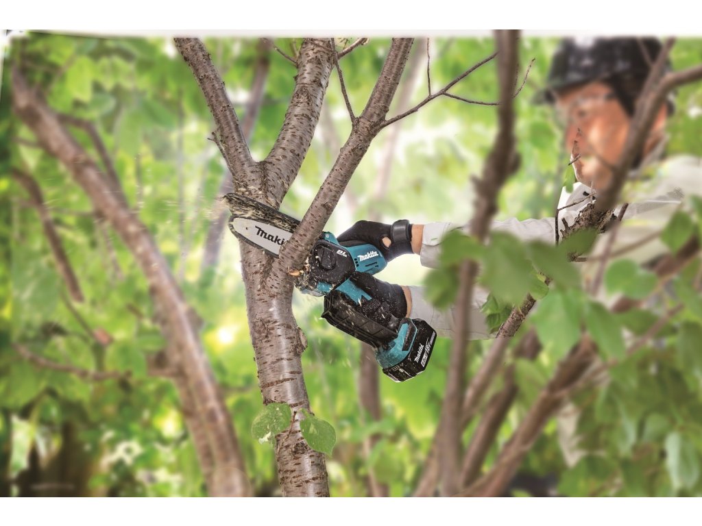 - Lehká a kompaktní prořezávací pila s lištou 150mm fungující na akumulátory Li-ion 18V