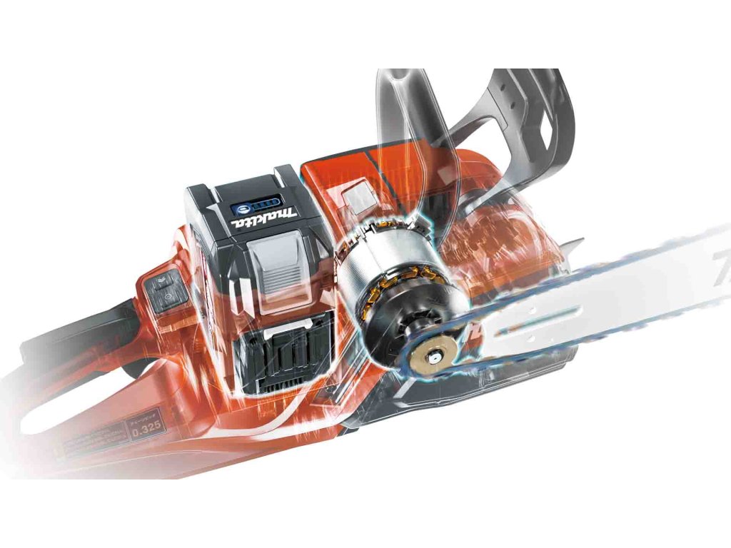- Velmi silný bezuhlíkový motor 2,8 kW (výkon s BL4080H) je napojený přímo na řetězku