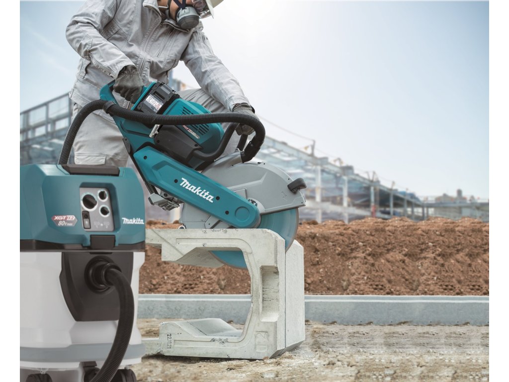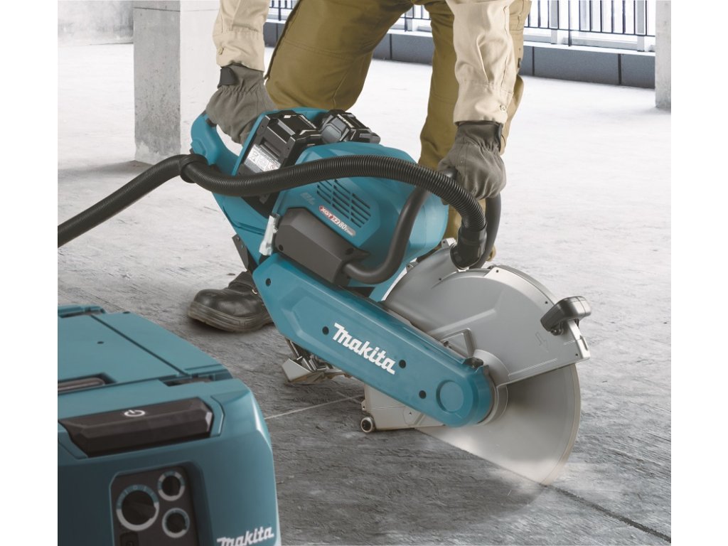 - Velmi silná aku rozbrušovací pila s kotoučem 355mm a možností velmi účinného odsávání prachu