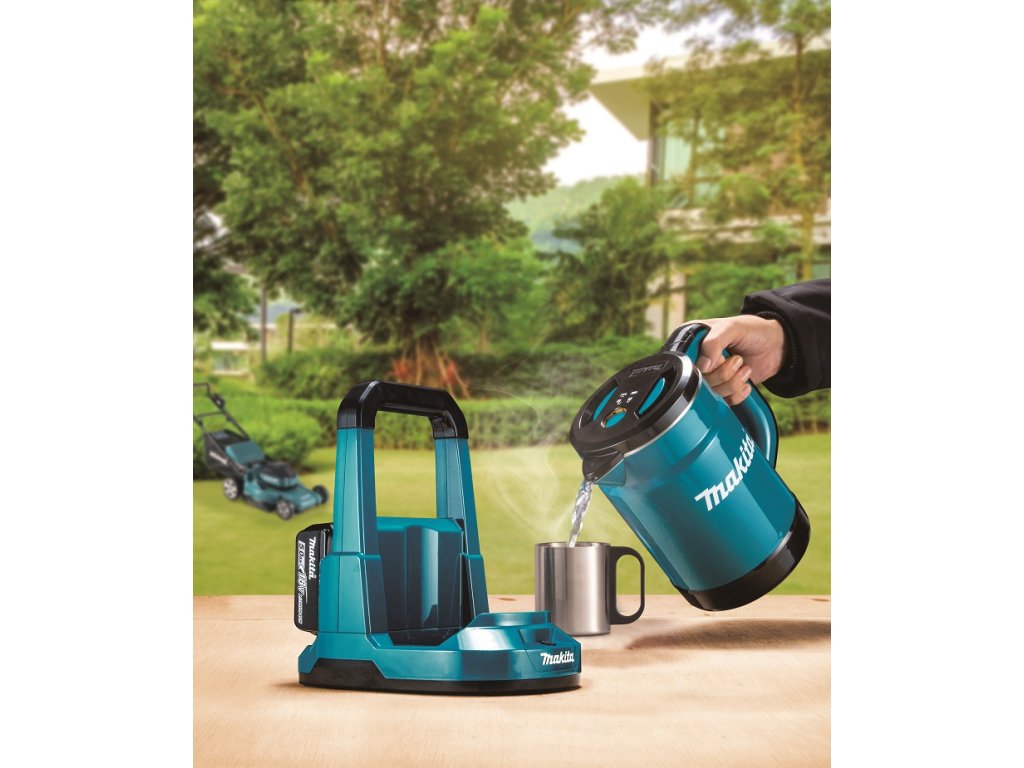 - Aku rychlovarná konvice fungující na dvy akumulátory Li-ion LXT 18V