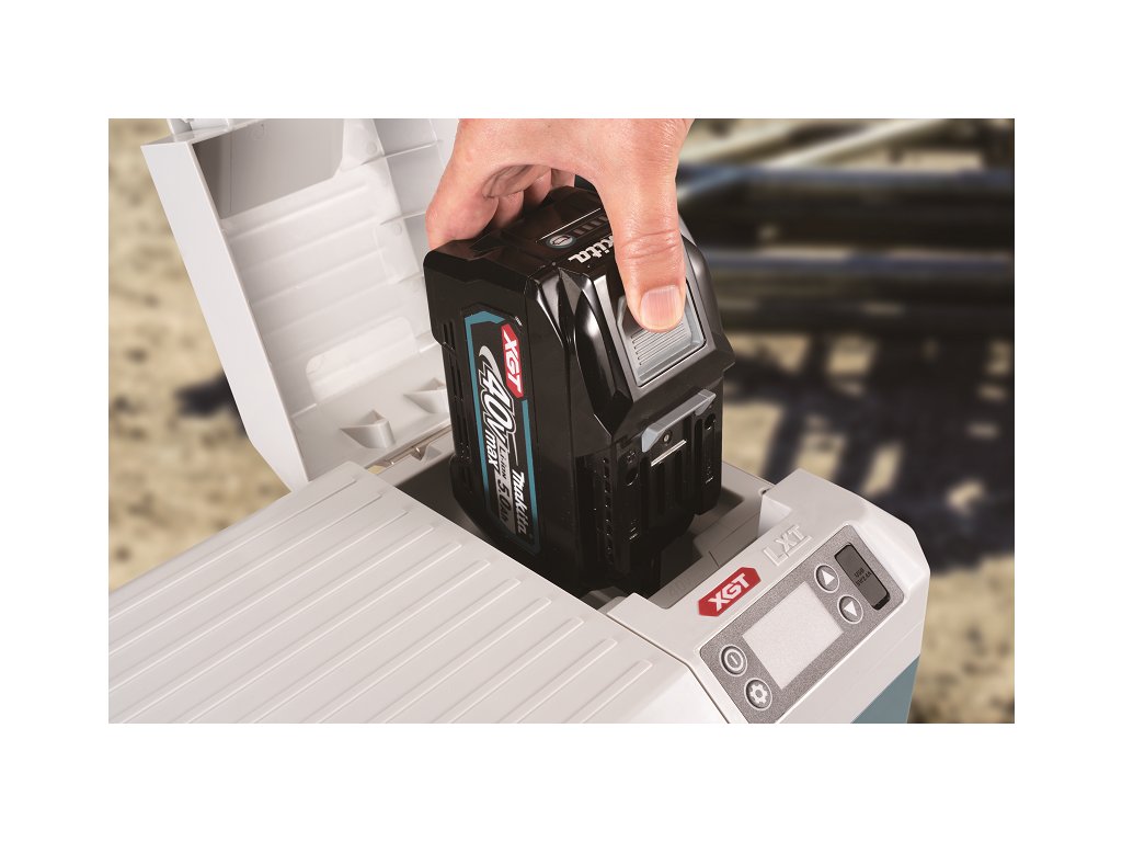 - Malý a šikovný pomocník na cestách fungující na akumulátor Li-ion XGT 40V, na akumulátor Li-ion LXT18V, síťový adaptér nebo autokonektor 12V