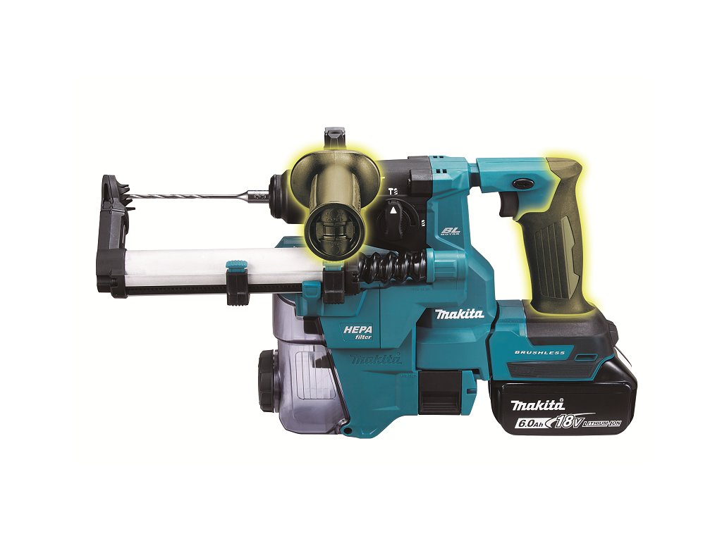 - Lehké a kompatkní aku vrtací kladivo s možností připojení odsávacího adaptéru
