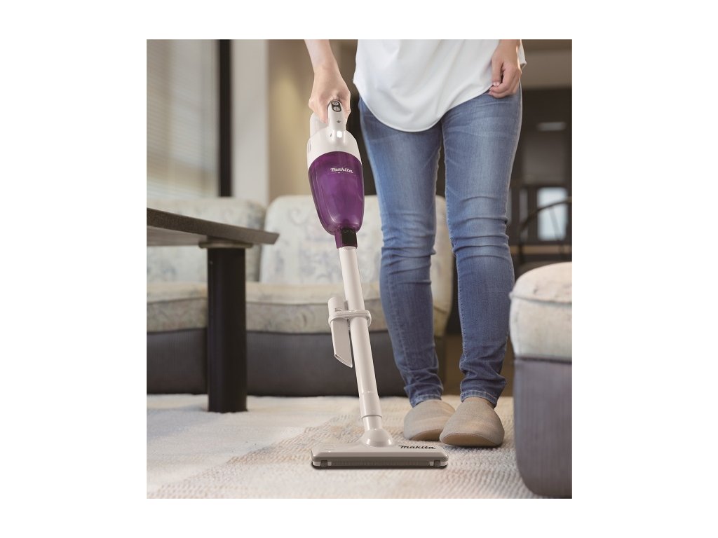 - Bílé provedení s fialovou nádobou na prach