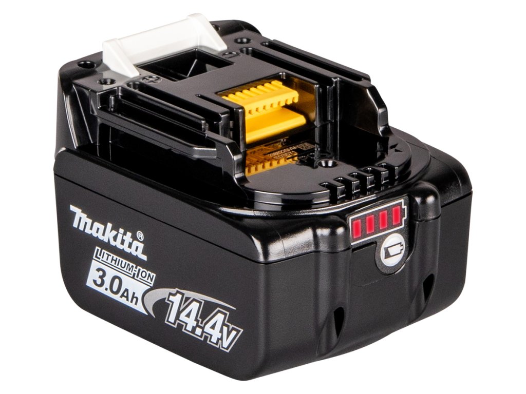 Li-ion • 14,4 V • 3,0 Ah • BL1430BA 14,4 V lithium-iontový akumulátor pro nářadí Navrženo pro práci s akumulátorovým nářadím Makita napájeným 14,4 V. Vysoce výkonný akumulátor pro všeobecné použití vybavený systémem chránícím před přetížením, nadměrným vybitím a přehřátím.Doplňkové parametry
