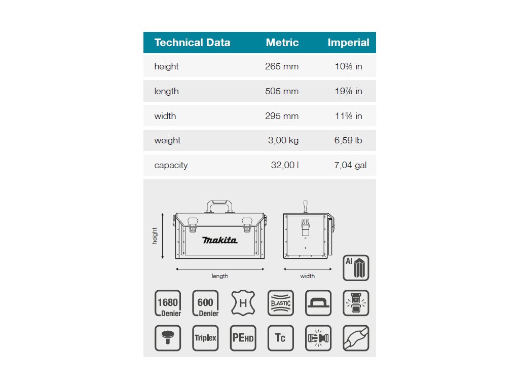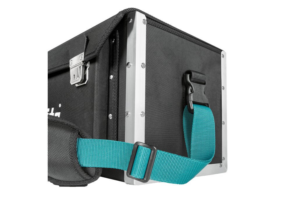Vyztužená brašna na nářadí. S ramenním popruhem, vyrobeno z vysoce odolného a pevného materiálu. Lze ji uzavřít pomocí 2 zámků na přední straně.Doplňkové parametry