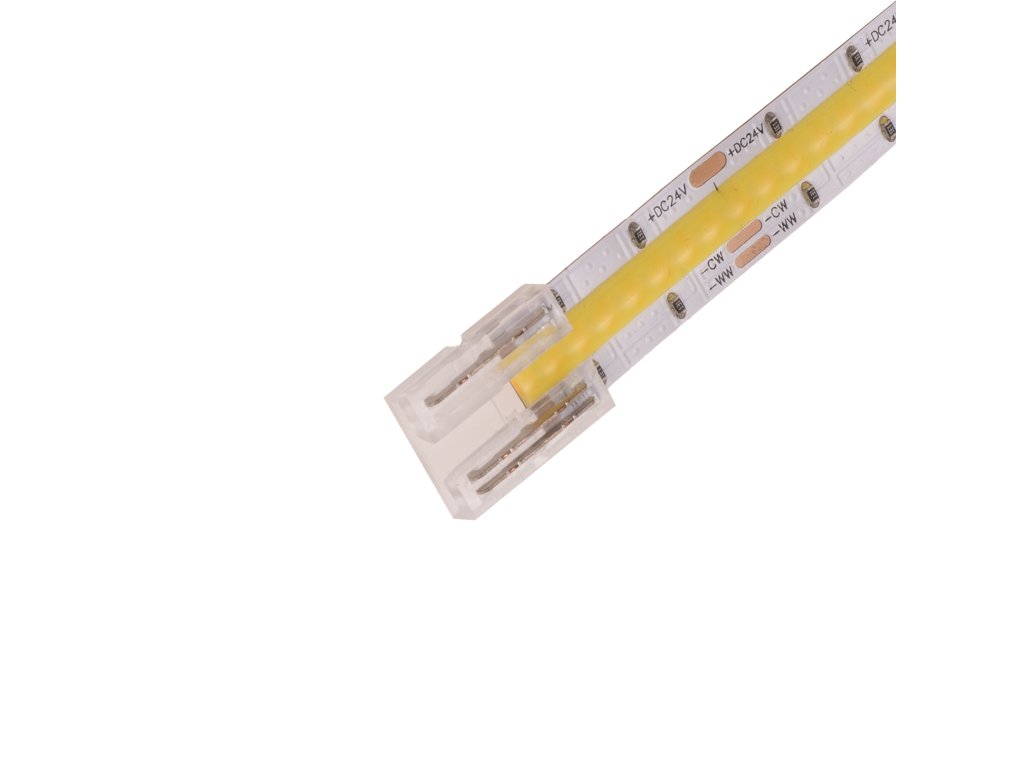 Je vhodné hlavně pro domácí použití, pro profesionální a dlouhodobé instalace doporučujeme LED pásky pájet. COB spojka je určena pouze pro 10mm CCT COB LED pásky. Spojka se na LED pásek nasadí a pomocí kleští se přitlačí kontaktní trny do LED pásku, kdy se trny poté do LED pásku zaříznou. Spojka je tedy určena pro jedno použití. Rozměr jedné spojky je 12x16mm. Maximální proudové zatížení 5A. Pro použití spojky do LED profily dejte pozor na vnitřní rozměry profily, aby se spojka do profilu vešla.