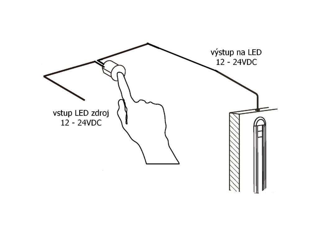 Dotykový stmívač ZDS1-W k zavrtání slouží k zapnutí, vypnutí a regulaci jasu jakéhokoliv světelného či jiného zařízení s provozním napětím 12-24VDC. Při připojení svítí uvnitř spínače modrá LED pro snadnou orientaci ve tmě.Ovládání: Dotykem senzoru zapnete nebo vypnete světelný zdroj, přidržením ubíráte nebo přidáváte intenzitu světla.