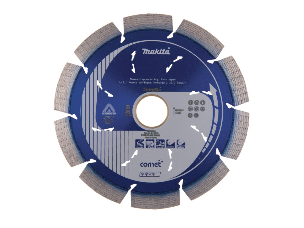Segmentový diamantový kotouč - velmi rychlý řez - beton, měkká cihla, břidlice, cementová cihla, vápenopísková cihla. Mokré i suché řezání. Výška segmentu 9,7mm.Doplňkové parametry