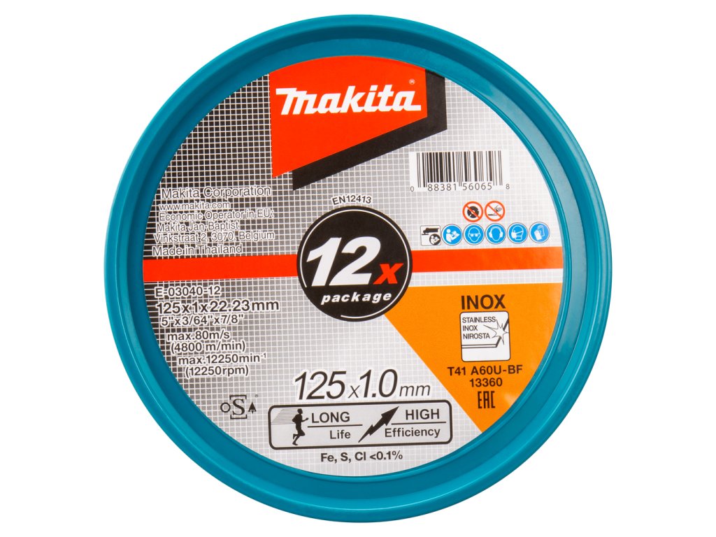 Řezný kotouč pro úhlové brusky na ocel a nerezovou ocel. 12ks řezných kotoučů v plastovém boxu.Doplňkové parametry