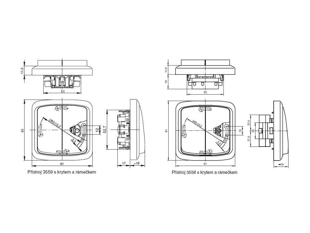 Kryt spínače se dodává s přídržnou deskou pro upevnění k přístroji spínače.