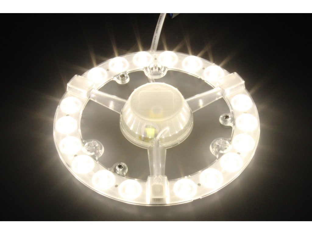 Magnetický LED modul je určený pro modernizaci stropních svítidel. Rychlá a snadná instalace spořívá v odstranění starých světelných zdrojů (například patic E27) a uchycením na kovový povrch svítidla třemi magnety, které jsou již integrované na LED modulu. Z bezpečnostních důvodů svěřte montáž odborníkovi.