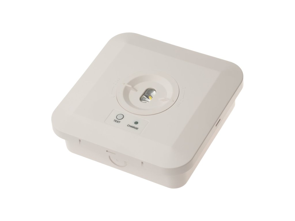Protipanické stropní LED nouzové svítidlo CYCLOP v bílém provedení s vestavěným akumulátorem o kapacitě 2300 mAh je určeno pro spolehlivé nouzové osvětlení při výpadku elektrické energie. V případě přerušení napájení poskytuje až 3 hodiny nepřetržitého svícení. Během běžného provozu se svítidlo automaticky dobíjí a aktivuje se pouze při výpadku proudu. Díky vysokému stupni krytí IP65 je odolné proti prachu a vlhkosti, a je tak vhodné pro použití v interiérech i exteriérech. Ideální je do prostor, kde je vyžadováno nouzové osvětlení, jako jsou obchody, chodby, schodiště, restaurace, divadla, nemocnice a další veřejné či komerční objekty. Životnost zdroje je zhruba 40000 hodin. Záruka na produkt je 24 měsíců, životnost baterie je minimálně 6 měsíců.Svítidlo v balení obsahuje 2 typy optik: