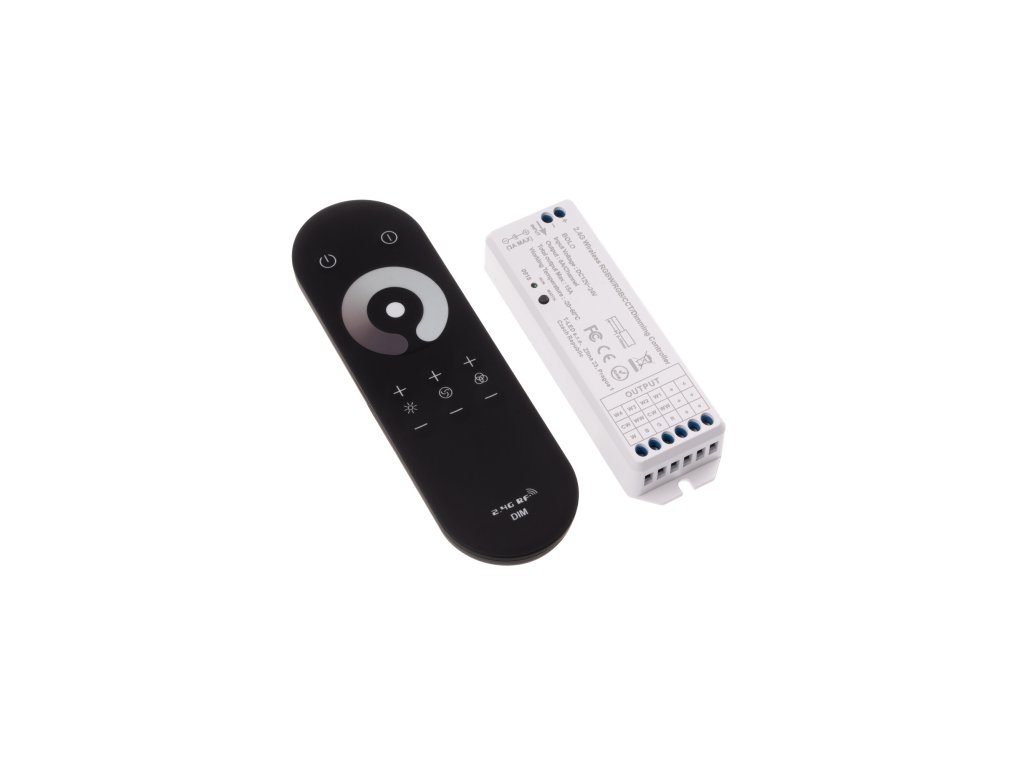 Tento jednokanálový RF stmívač a vypínač umožňuje pohodlné dálkové ovládání intenzity jasu LED pásků, stmívatelných LED žárovek (12–24V) a jednobarevných LED modulů. Díky radiofrekvenční technologii není nutná přímá viditelnost mezi ovladačem a přijímačem, což umožňuje skrytí přijímače za zdí, sádrokartonem nebo ve skříni.