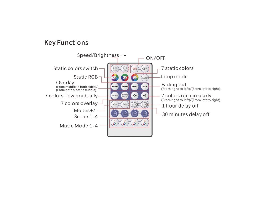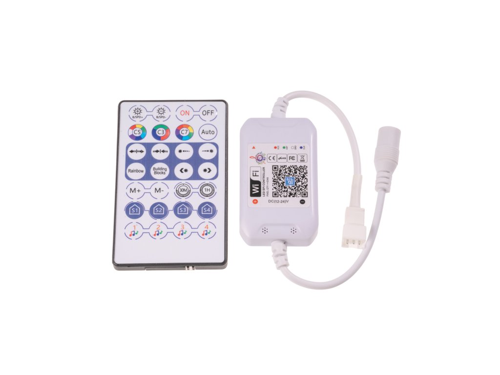 Programovatelný ovladač digitálních LED pásků s dálkovým ovladačem do ruky. Po instalaci aplikace (iOS, Android) můžete ovládat světlo přímo z Vašeho telefonu nebo přiloženým ovladačem. Popis funkcí a nastavení naleznete v návodu ve složce Ke stažení. Digitální ovladačů umožňuje ovládání až 2048 LED diod (pixelů). Ovladač použijte pouze jako zdroj signálu, pásek napájejte přímo ze zdroje. Dle typu čipu na digitálním pásku nemusí být podporované některé funkce. Možnost propojení z Google Assistant a Amazon Alexa. Pokud na Vašem LED pásku je jiný nebo žádný konektor, lze konektor ustřihnut a zapojit přímo na kabely.Ovladačem můžete ovládat RGB i jednobarevné digitální LED pásky, přiložený ovladač je více uzpůsobený pro RGB digitální LED pásky.