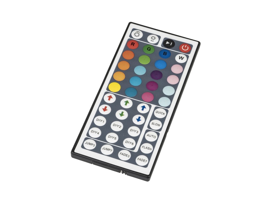 Programy : 44 tlačítek, 20 přednastavených barev, 6 předvoleb pro vlastní nastavení barvy, přepínání nebo prolínání 3 nebo 7 barev, 1 automatický program střídá všechny efekty ovladače, možnost nastavení intenzity jasu a rychlosti změny barev