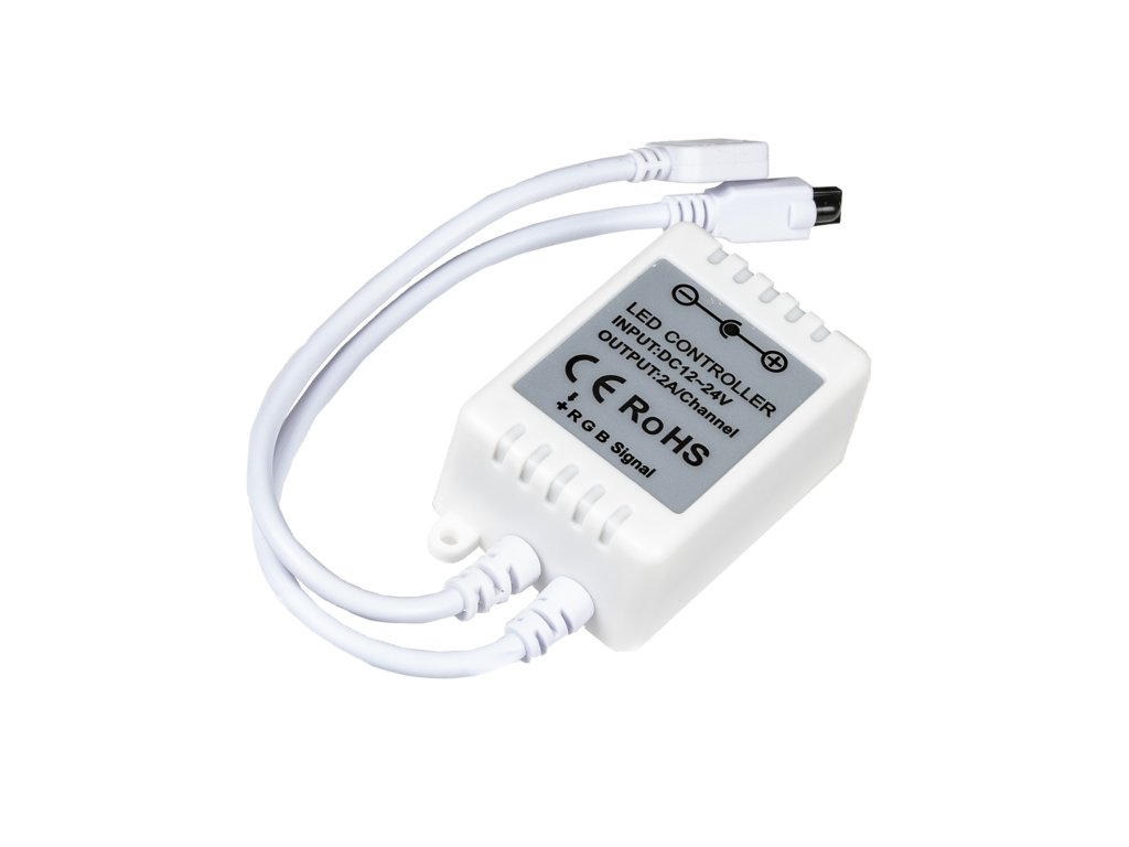 Ovladač tříkanálový IR (infračervené ovládání) umožňuje dálkově ovládat intensitu jasu, nastavení barev, barevných přechodů u RGB LED pásků a modulů. Přijímač má přijímací čidlo IR signálu, na které musí být přímá viditelnost pro ovladač.Upozornění !!! Ovladače s IR signálem nedoporučujeme k televizním přijímačům v jednom směru, jelikož mohou komunikovat s TV ovladačem a obráceněně, jedná se o stejnou technologii vysílání.