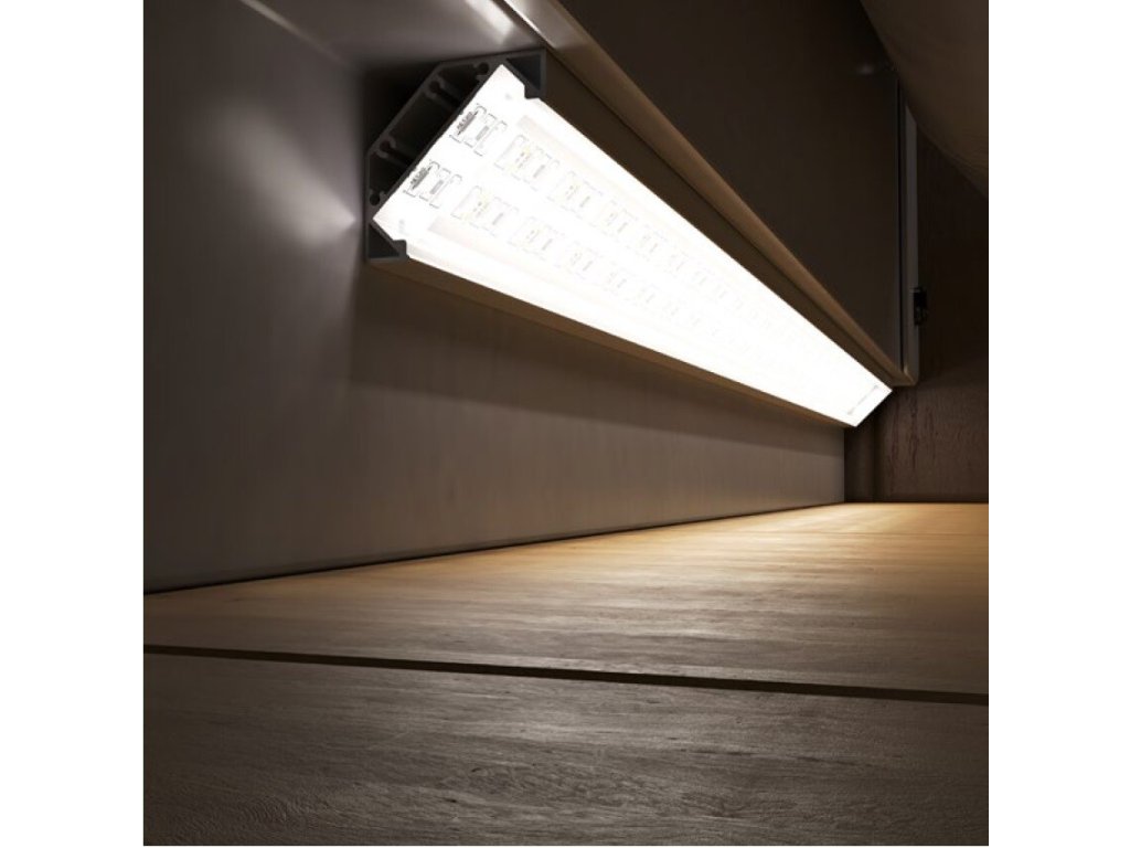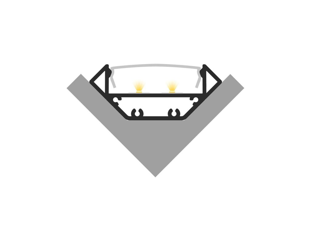 Výhoda tohoto profilu je možnost nacvaknutí plastové krytky (difusoru) přímo z čelní strany profilu. Difusory jsou vyrobeny z kvalitního UV odolného polykarbonátu, který postupem času nežloutne, je měkčený a nepraská.