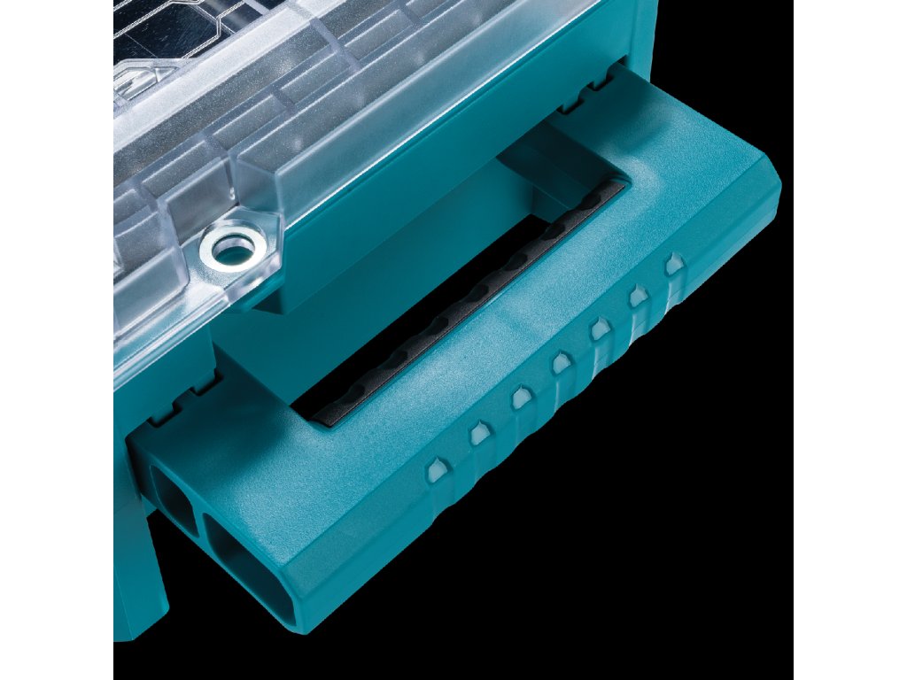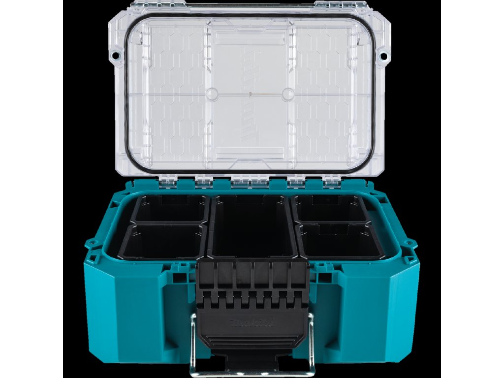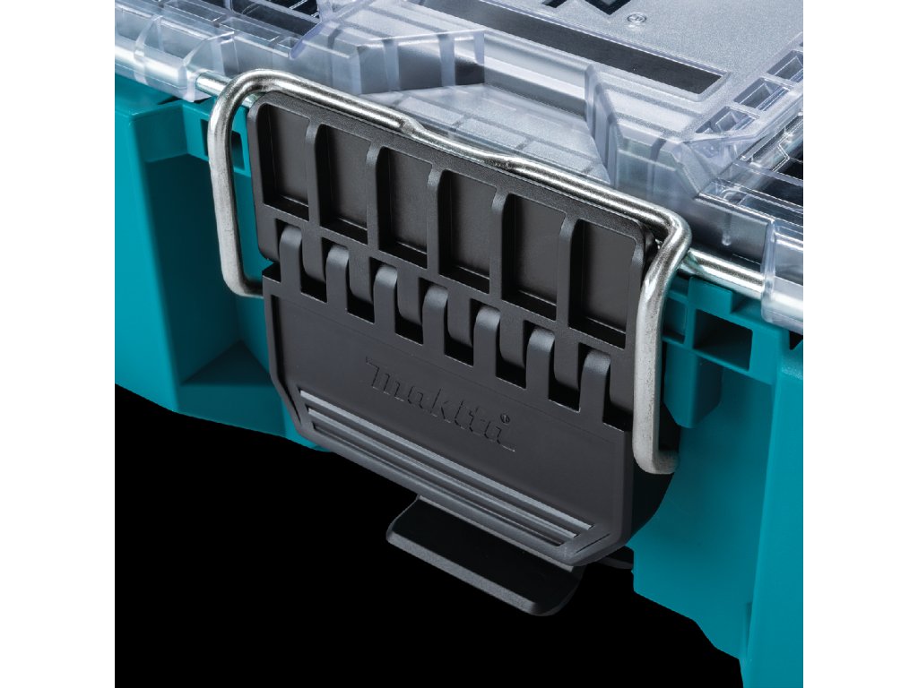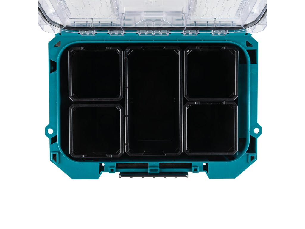 Organizér je vyroben z kopolymeru odolného proti nárazu, aby odolal nejnáročnějším podmínkám na pracovišti. Má různé velikosti přihrádek pro uspořádání malých i velkých dílů, s nízkoprofilovým designem pro organizaci malých dílů. Nosnost 23 kg, objem 8.6 l Až o 25 % větší kapacita ve srovnání s předními konkurenty Průhledné víko pro snadné nahlédnutí dovnitř a žebrovaný design zajišťuje přihrádky na místě 5 vyjímatelných přihrádek organizéru pro všestranné skladování Hluboké koše s dělicími otvory pojmou různé délky Koše se skládají dohromady pro větší optimalizaci prostoru Kompaktní design pro dva na střední víko Velké západky vhodné pro práci v rukavicích Robustní pohodlná rukojeť pro přenášení Kovové zesílené uzamykací body a skrytý slot Security TrackerDoplňkové parametry