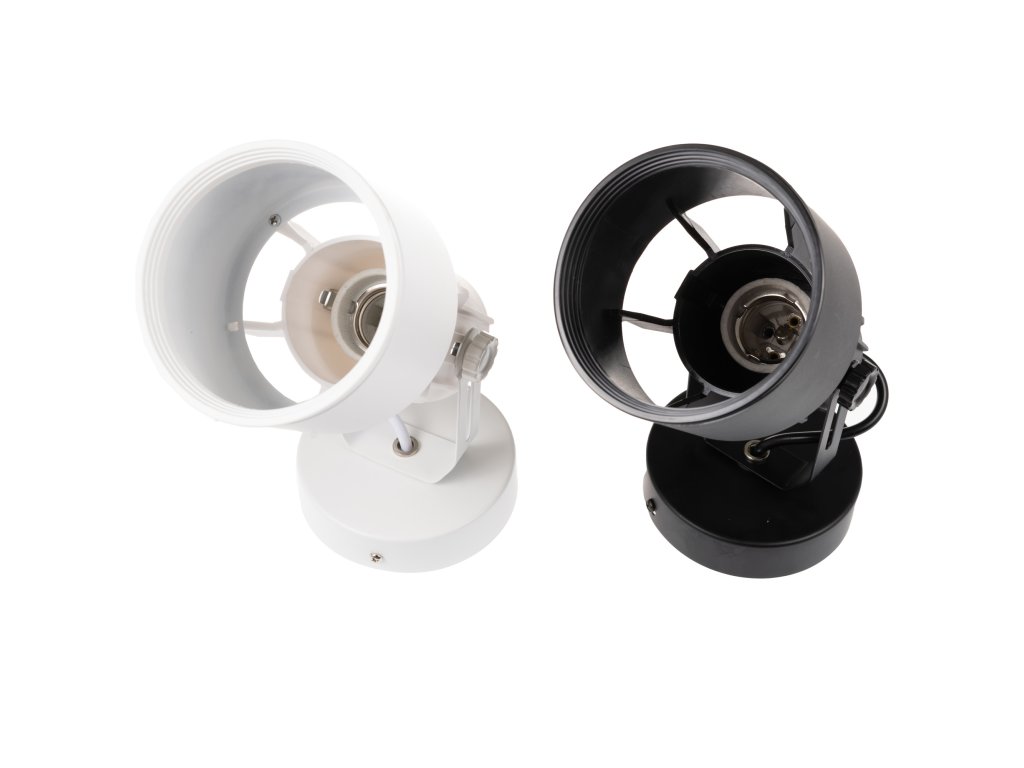 Nástěnné svítidlo JET-N E27 s paticí E27, na výběr v barvě černé a bílé. Součástí svítidla nejsou žárovky.Do svítidla je doporučená LED žárovka PAR30 35W nebo LED žárovka PAR30 45W, lze však instalovat jakoukoliv žárovku se závitem E27 maximálně do velikosti doporučené PAR30.