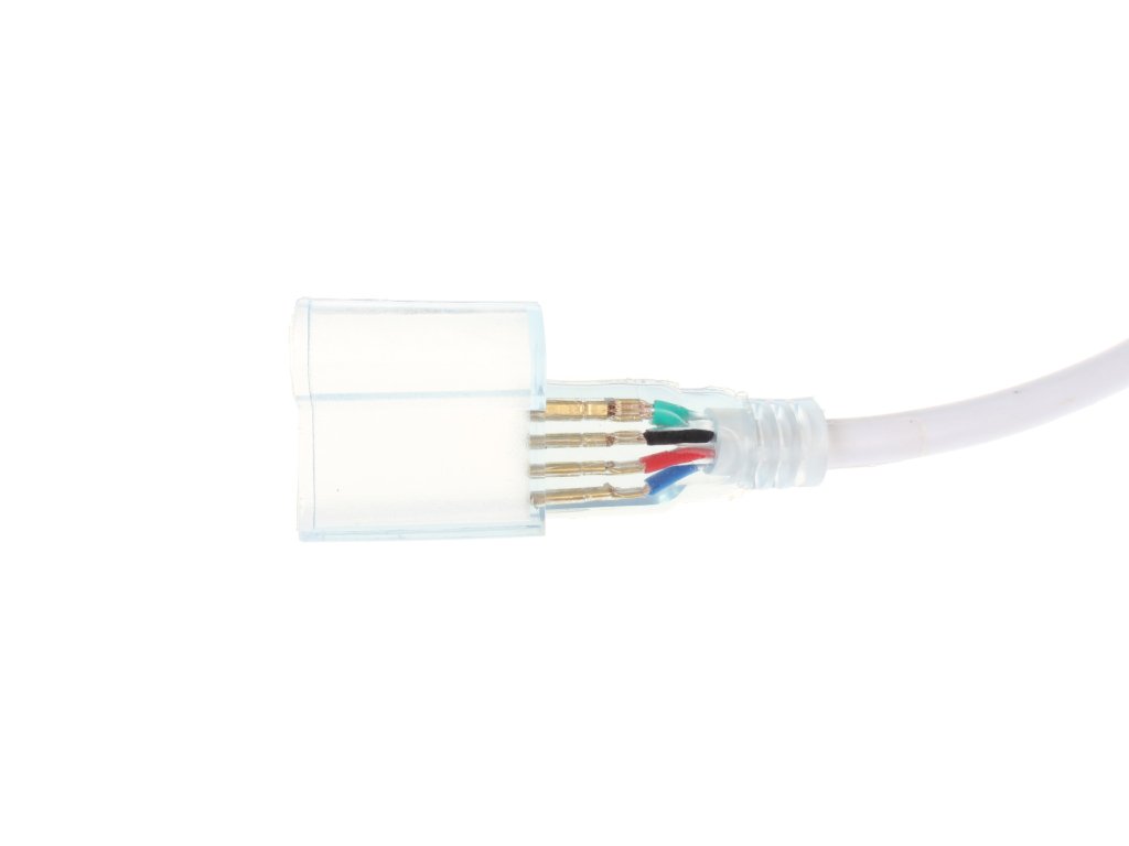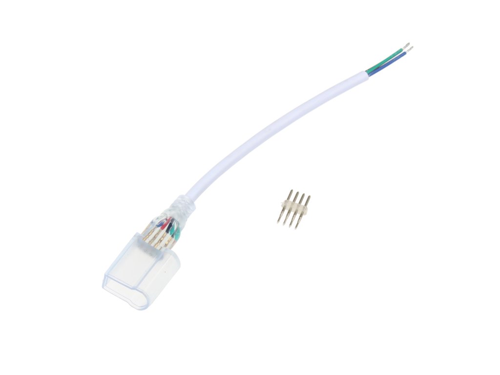 Přípojka pro LED NEON RGB. Slouží k připojení LED NEON RGB k ovladači.Celková délka přípojky je 20 cm. Součástí je i trn, který se nastrčí do LED NEON RGB a na něj se přípojka nasadí.