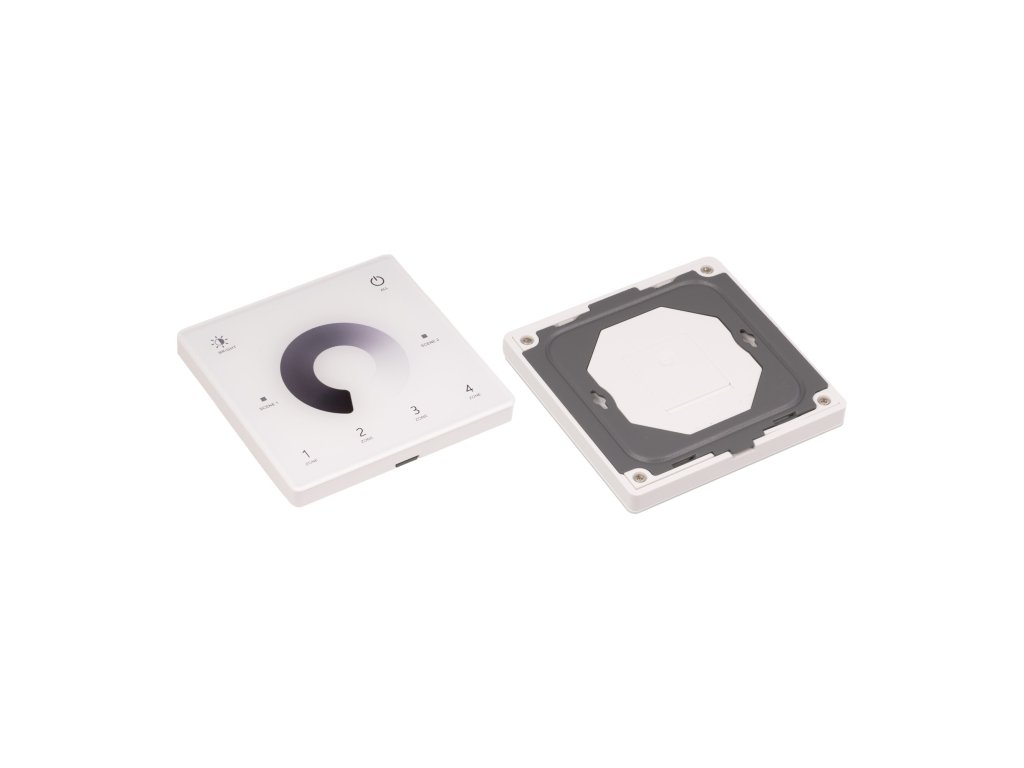 Čtyřkanálový LED ovladač OV PNS pro jednobarevné osvětlení je bezdrátový radiofrekvenční ovládací systém jednoho ovladače a několik přijímačů. S jedním ovladačem lze ovládat nezávisle 4 zóny, která se mohou skládat z několika přijímačů. Tyto přijímače se po sehrání na jednotlivé předvolbě na ovladači ovládají jako jedna sekce. Přijímač může být ukrytý (za zdí, sádrokartónem či ve skříni), není nutná přímá viditelnost přijímače pro ovladač. Ovladač PNS je složen se samotného ovladače a rámečku. Tento rámeček lze přišroubovat na standartní EU krabic, případně přivrtat k jinému povrchu. Díky svému rovnému tvaru lze ovladač také přilepit na jakékoliv jiné místo například pomocí oboustranné lepicí pásky.Součástí balení:
