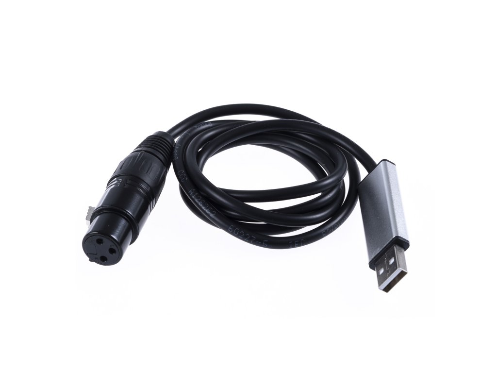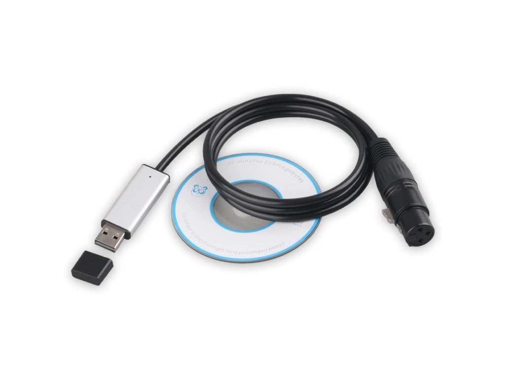 Kabel USB do DMX umožňuje připojit sběrnici DMX512 pomocí USB a ovládání DMX přístrojů pomocí PC. Lze tedy využít plných 512 kanálů, ale případně i jiný počet dle možností použitého programu.