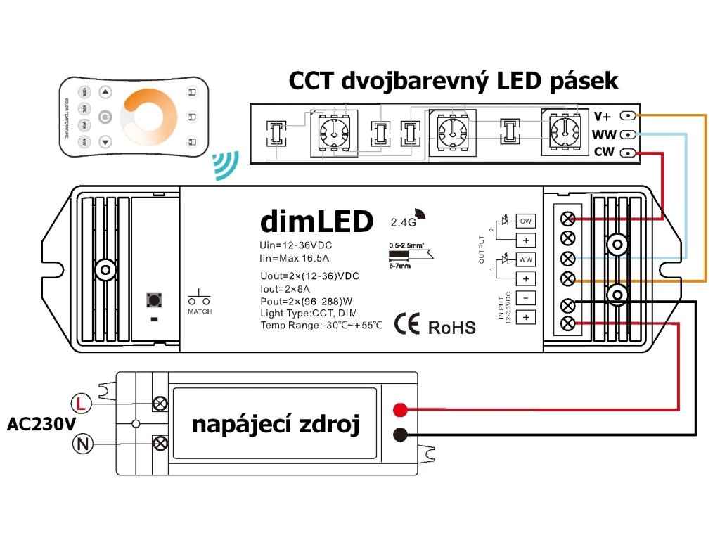 Přijímač je kompatibilní se všemi CCT ovladači řady dimLED !!!