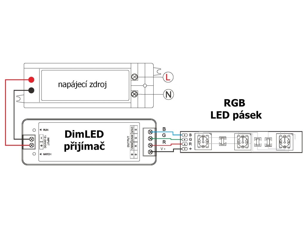 Přijímač je kompatibilní pouze s ovladači řady dimLED!