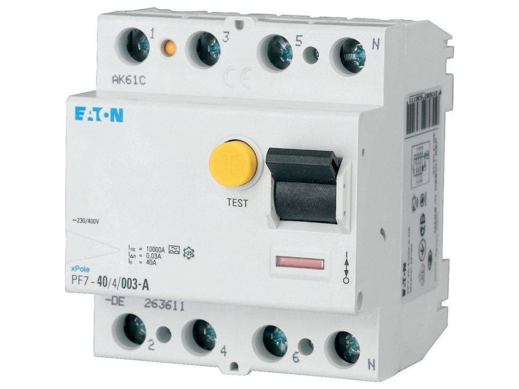 Proudový chránič EATON PF7-25/4/03-A 25A 300mA A 263610Chránič Ir=250A, typ A, 4-pól, Idn=0.30A, In=25A