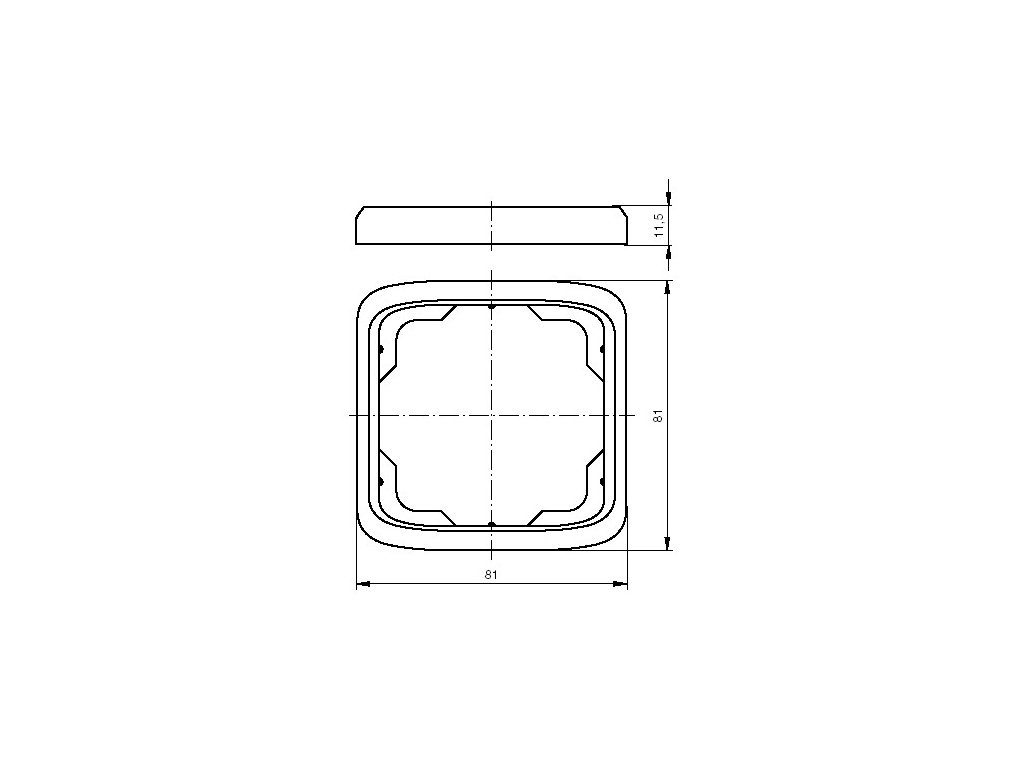 Rozměry jednonásobného krycího rámečku ABB Tango jsou 81 × 81 × 11,5 mm.
