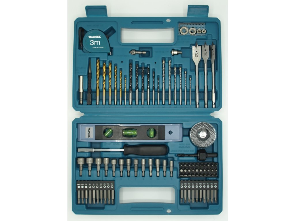 Sada obsahuje vrtáky do dřeva válcové: 60 x 3, 75 x 4, 85 x 5, 92 x 5.5, 92 x 6, 100 x 6.5 mm, HSS- vrtáky do kovu válcové: 61 x 3, 75 x 4, 86 x 5, 93 x 5.5, 93 x 6, 101 x 6.5 mm, vrtáky do zdiva válcové: 60 x 3, 75 x 4, 85 x 5, 85 x 5.5, 100 x 6, 100 × 6.5 mm, bity 1/4 '' 25 mm: 2 x PZ1, 3 x PZ2, 2 x PZ3, PH1, PH2, PH3 T10, T15, T20, T25, T27, T30, HEX3, HEX4, HEX5, HEX6, 2 x SL 0,5 x 3.0, 2 x SL 0.5 x 4.0, 2 × SL 0.6 x 4.5, 2 x 1.0 x 6.0, SL 1.2 x 7.0, SL 1.2 x 8.0, bity 1/4 '' 50 mm: PZ0, PZ1, 2 x PZ2, PZ3, PH1, 2 x PH2, PH3, T10, T20, T25, T27, HEX3, HEX4, HEX5, HEX6, SL 0.5 x 3.0, SL 0.5 × 4.0, SL 0.6 x 4.5, 1/4 '' nástavec pro sádrokarton 30 mm, magnetický držák 1/4 '' 60 mm, 1/4 "nástrčné klíče 38 mm: 2 x 5, 5.5, 2 x 6, 2 x 7, 8, 9, 10, 11, 12, 13 mm, omezovače hloubky: 3, 5, 8, 10 mm, šestihranný klíč 2,5 mm, důlčík, adaptér 1/4 '' 36 mm, ploché bity 1/4" x 150 mm: 12, 16, 19 mm, korunky: 32, 38, 45, 54 mm, daptér pro korunky 1/4 " šestihranný / válcový, prodloužení, vodováha 229 mm, svinovací metr 3 m. Dodáváno v plastovém kufru.Doplňkové parametry