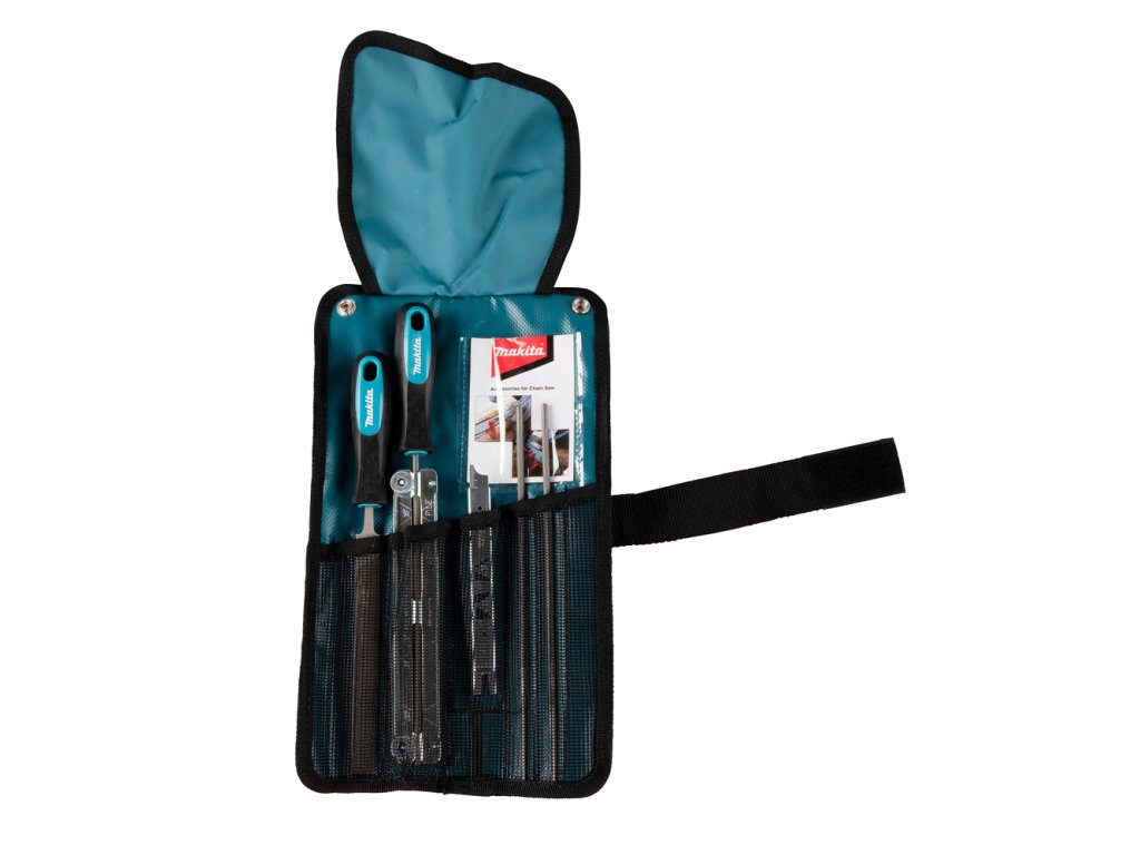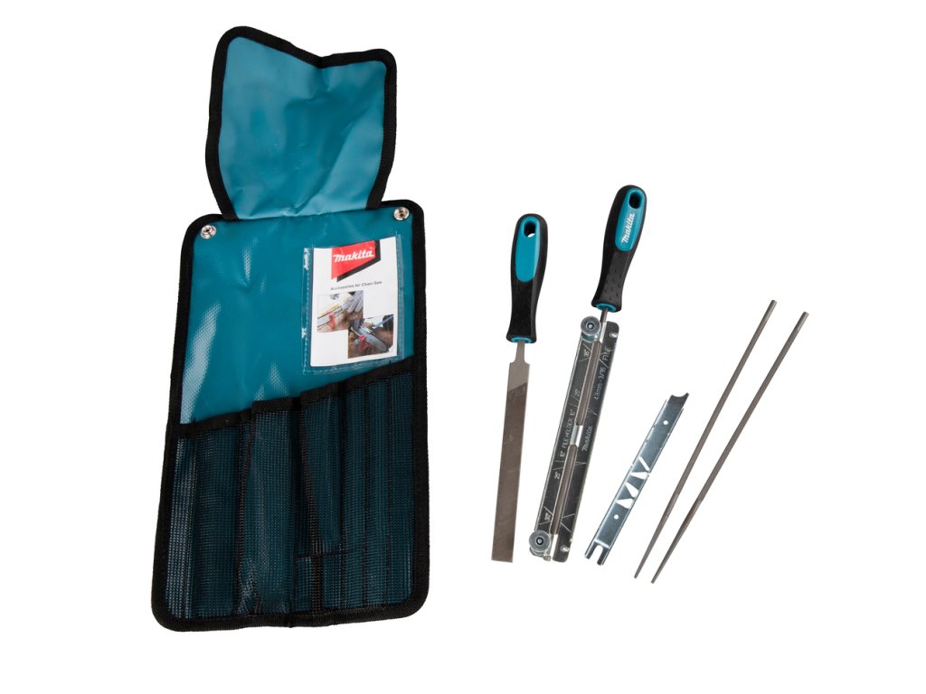 Sada pilníků na broušení řetězů 4.8 mm, 5 ks. Sada obsahuje: 2x Pilník kulatý pr. 4.8 mm, rukojeť s pilníkem pr. 4.8 mm, pilník plochý na omezovací zuby (lze použít i na ostření kotoučových pil HSS), vodítko, měrka na omezovací zuby, textilní pouzdro.Doplňkové parametry