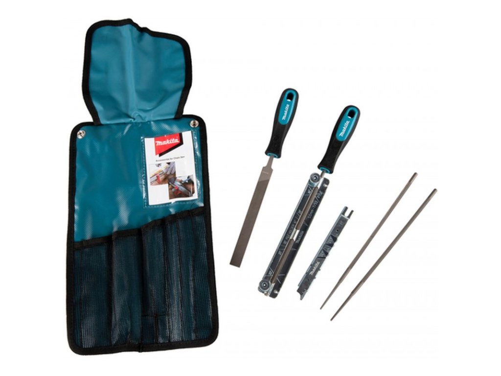 Sada pilníků na broušení řetězu 5.5 mm, 5 ks. Sada obsahuje: 2 ks kulatý pilník 5.5 mm, 1 ks plochý pilník, 2 ks držadlo pilníku, úhlové vedení pilníku, přípravek pro srážení omezovacího zubu, textilní pouzdro.Parametry produktu: