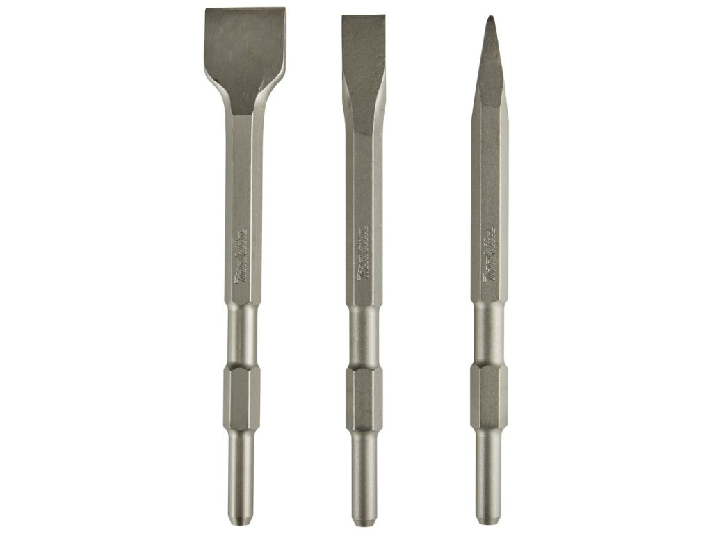 Sada sekáčů 3 ks šestihran 17 mm v plastovém obalu. Sada obsahuje plochý sekáč 255 x 40 mm, plochý sekáč 255 x 20 mm a špičák 255 mm.Doplňkové parametry
