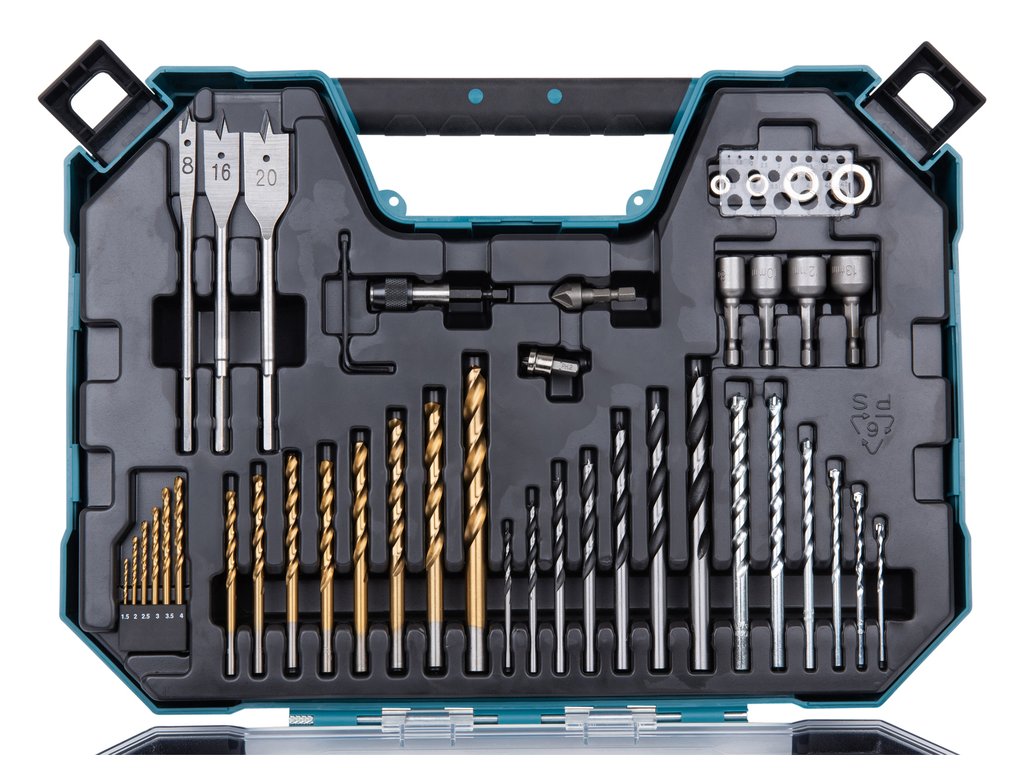 Sada obsahuje: vrtáky do kovu HSS-TiN 1.5, 2, 2.5, 3, 3.5, 4, 4.5, 5, 5.5, 6, 6.5, 7, 8, 10 mm, vrtáky do zdiva 3, 4, 5, 6, 8, 10 mm vrtáky do dřeva 3, 4, 5, 6, 7, 8, 10 mm vrtáky ploché do dřeva 8, 16, 20 mm bity: 25 mm: 2 x PH1, 3 x PH2, 3 x PH3, 2 x PH4, 2 x PZ1, 3 x PZ2, 3 x PZ3, 2 x PZ4, 3 x T20, 3 x T25, 2 x T30, 2 x T40, 2 x SL 1.0x6.0, 3 x SL 1.2x7.0, 1 x SL 1.6x8.0, HEX3, HEX4, HEX5, HEX8, bity 50 mm PH2, PH3, PH4, PZ2, PZ3, PZ4, T20, T25, T30, T40, 1 x SL 1.0x6.0, 2x SL 1.2x7.0, 1 x SL 1.6x8.0, HEX3, HEX4, HEX5, HEX8, Nástrčný klíč 50 mm: 8, 10, 12, 13 Bit na sádrokarton, rychlovýměnný držák bitů, záhlubník, šablona pro vrtání, hloubkoměr 3, 5, 8, 10 mm, klíč pro hloubkoměr, vodováha, zalamovací nůž, ráčnová rukojeť. Dodáváno v plastovém kufru.Doplňkové parametry