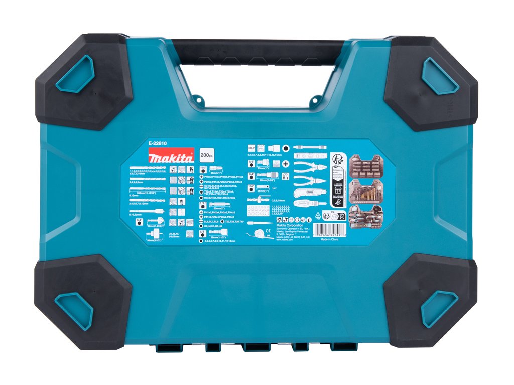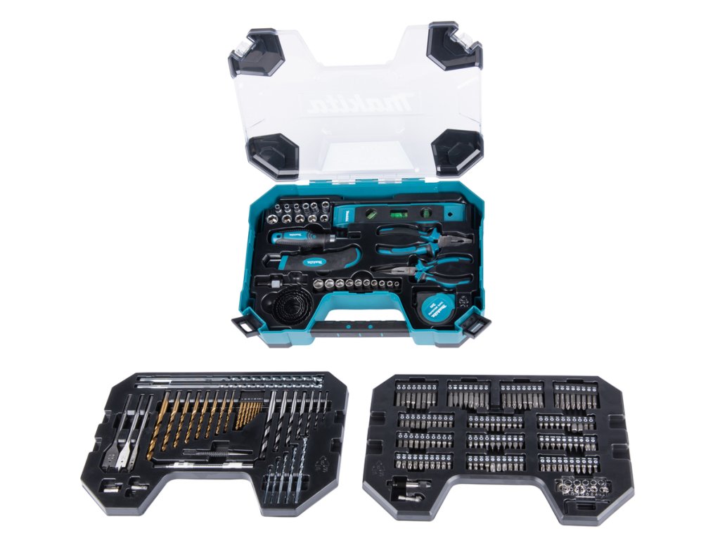 Sada obsahuje : Vrtáky do kovu HSS-TiN - průměr 1, 1.5, 2, 2.5, 3, 3.2, 3.5, 4, 4.5, 5, 5.5, 6, 6.5, 7, 8 a 10 mm po 1 ks Vrtáky do dřeva - průměr 3, 4, 5, 6, 8 , 10mm po 1 ks Vrtáky do zdiva - průměr 3, 4, 5, 6 a 8 po 1 ks Vrtáky do zdiva dlouhý - průměr 8 a 10 po 1 ks Vrtáky ploché do dřeva - průměr 8, 16a 20 mm po 1 ks Bity 25 mm PH0 (2 ks), PH1 (3 ks), PH2 (5 ks) PH3 (3 ks), PH4 (3 ks) Bity 25 mm PZ0 (2 ks), PZ1 (3 ks), PZ2 (5 ks) a PZ3 (3 ks),PZ4 (3 ks) Bity 25 mm T10 (4 ks), T15 (4 ks), T20 (4 ks), T25 (4 ks), T27 (1 ks), T30 (4 ks), T35 (1 ks), a T40 (4 ks) Bity 25 mm SL0.8x4.0 (2 ks), SL0.8x5.0 (2 ks), SL1.0x5.5 (2 ks), SL1.0x6.0 (2 ks), SL1.2x7.0 (4 ks), SL1.6x8.0 (2 ks), Bity 25 mm HEX3 (4 ks), HEX4 (4 ks), HEX5 (4 ks), HEX6 (4 ks), HEX8 (2 ks) Bity 50 mm PH1 (2 ks), PH2 (4 ks), PH3 (2 ks) a PH4 (2 ks) Bity 50 mm PZ1 (2 ks), PZ2 (4 ks), PZ3 (2 ks) a PZ4 (2 ks) Bity 50 mm T20 (1 ks), T25 (1 ks), T30 (1 ks) a T40 (1 ks) Bity 50 mm SL1.0x6.0, SL1.2x7.0, SL1.6x8.0, Bity 50 mm HEX3, HEX4, HEX5, HEX6, HEX8, Bity nástrčkové šestihran velikost 5, 5.5, 6, 7, 8, 9, 10, 11, 12 a 13 po 1 ks Bity nástrčkové čtyřhran velikost 5, 5.5, 6, 7, 8, 9, 10, 11,12, 13 a 14 po 1 ks Vrtací korunky 32, 38, 45, 54, 68 mm po 1 ks Adaptér vrtacích korunek 1 ks, Rychlovýměnný nástavec 1 ks, Záhlubník, 1/4'' adaptér, bit na sádrokarton, vrtací šablona, hloubkoměr 3,5,8,10 mm; klíč pro hloubkoměr, pásmo 3m, vodováha, důlčík, zalamovací nůž, ohebné prodloužení šroubováku, ráčnová rukojeť, kombinované kleště, kleště zahnuté a kufr.Doplňkové parametry