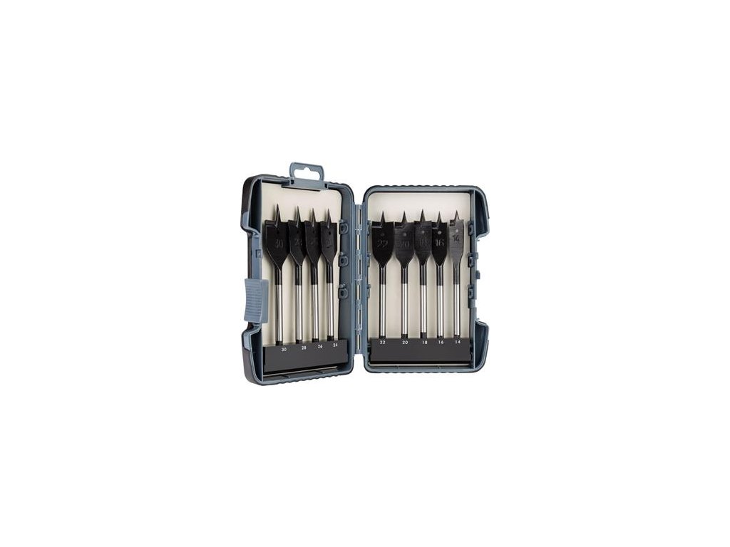 sada vrtáků plochých s válcovou stopkou do dřeva 9 ks v plastové krabičce