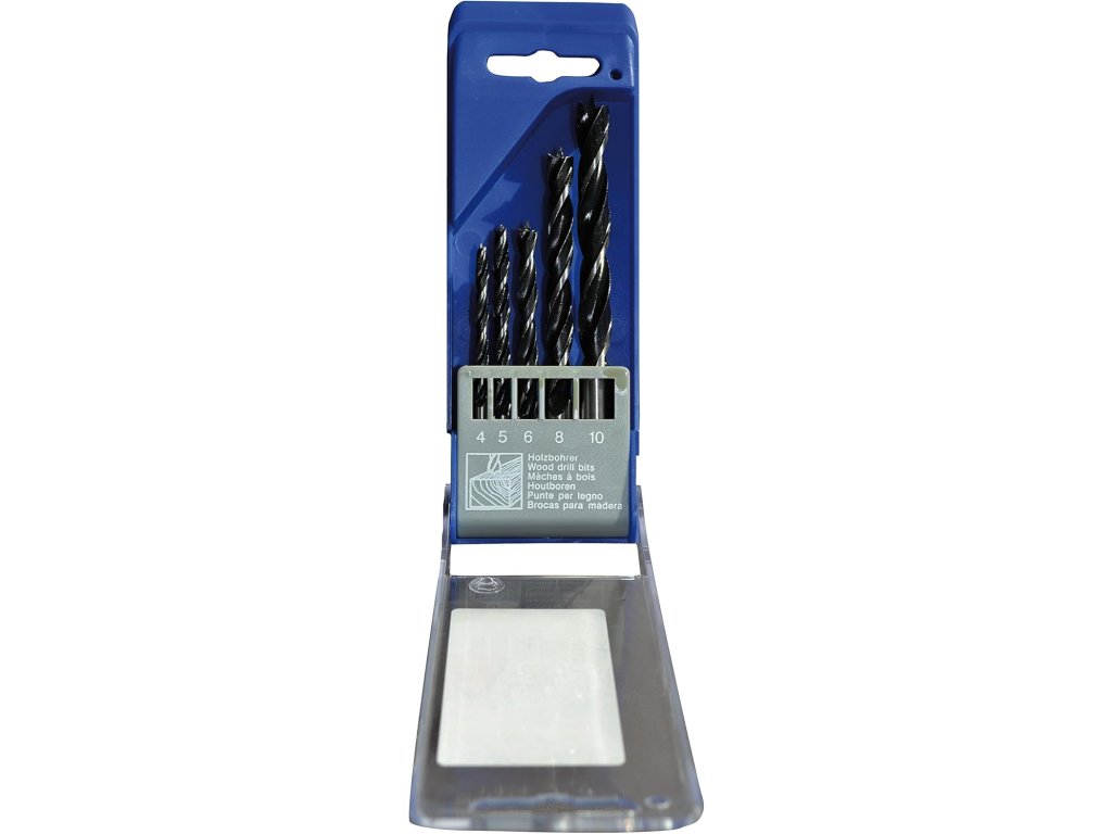 Sada spirálových vrtáků 5 ks v rozměrech 4, 5, 6, 8, 10 mm. Dodáváno v plastové krabičce.Doplňkové parametry