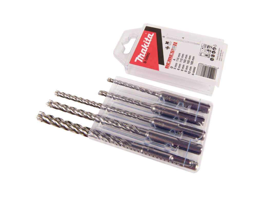 Sada 4břitých vrtáků Nemesis 2 pro příklepové vrtání s dynamickou vrtací špičkou a jedinečnou řeznou geometrií. Celkem 5 kusů, rozměry 5 x 115, 6 x 115, 6 x 165, 8 x 165, 10 x 165 mm.Doplňkové parametry
