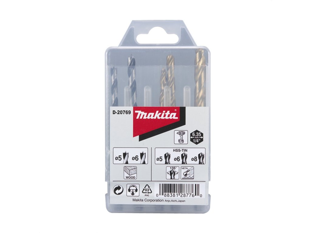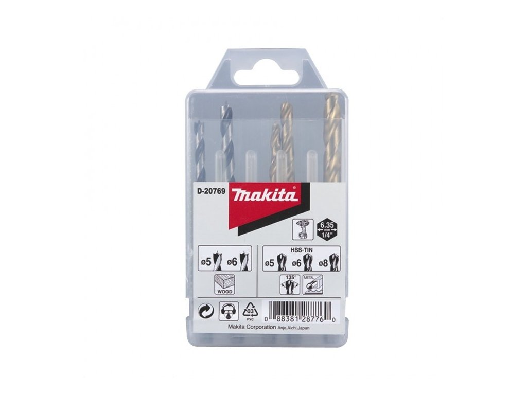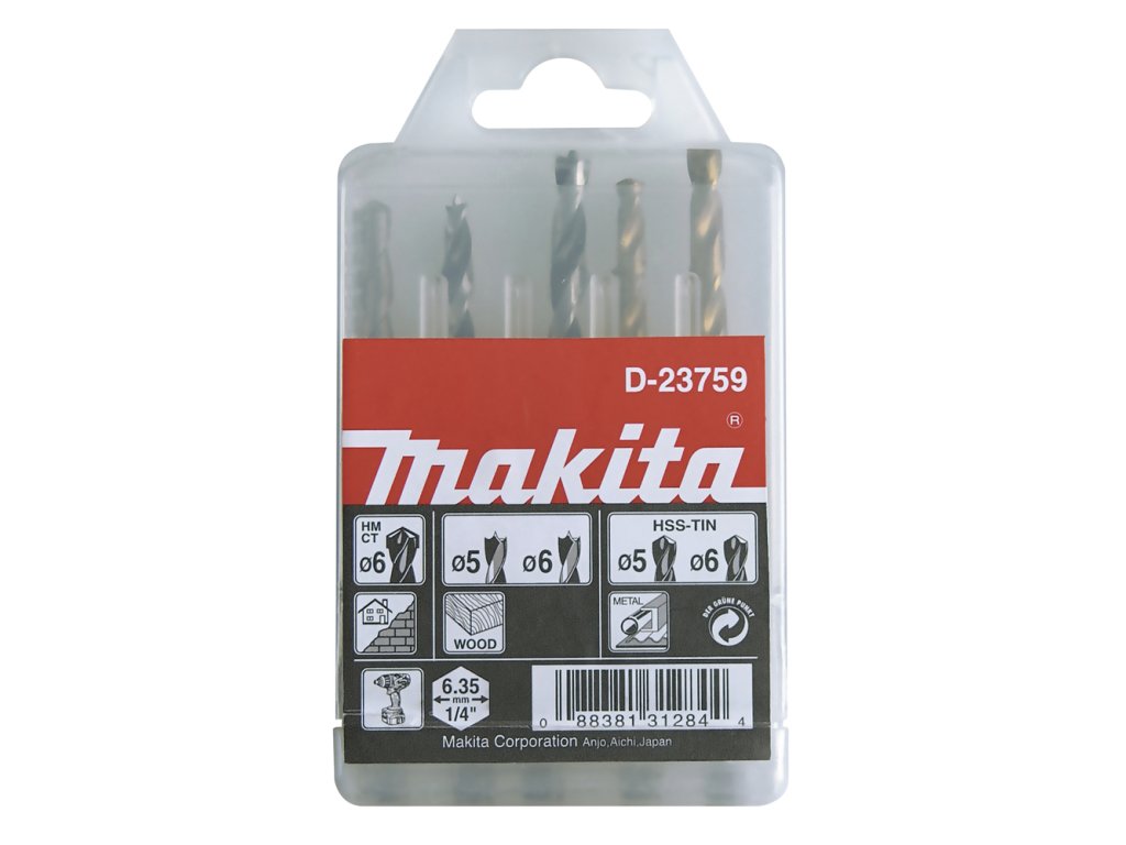 Sada vrtáků do kovu, dřeva a zdiva. Tato sada vrtáků má upnutí HEX 1/4" - šestihran velikosti bitu. Jsou tedy vhodné i pro upnutí do rázových šroubováků. Vrtáky do dřeva 5 a 6 mm, vrtáky do kovu HSS-Tin 5 a 6 mm, vrták do zdiva 6 mmDoplňkové parametry