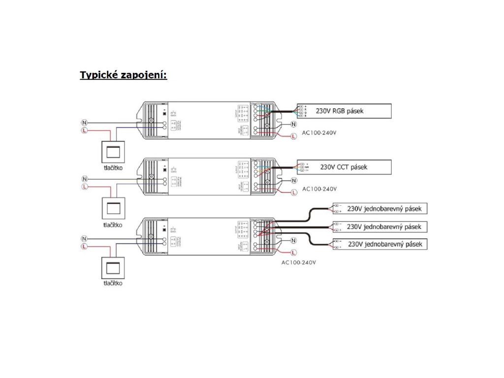 Chytrý radiofrekvenční přijímač stmívač pro 230V LED pásky s podporou aplikace Tuya. Přijímač je určený jak pro jednobarevné, tak i RGB 230V LED pásky, případně LED NEON. Přijímač dle napárovaného ovladače pozná, zda se jedná o jednobarevné nebo RBG 230V LED pásky. U jednobarevného zapojení jsou ovladačem ovládány všechny 3 kanály najednou, u RGB každý kanál ovládá barvu zvlášť. Přijímač může být ukrytý (za zdí, sádrokartónem či ve skříni), není tedy nutná přímá viditelnost přijímače pro ovladač.