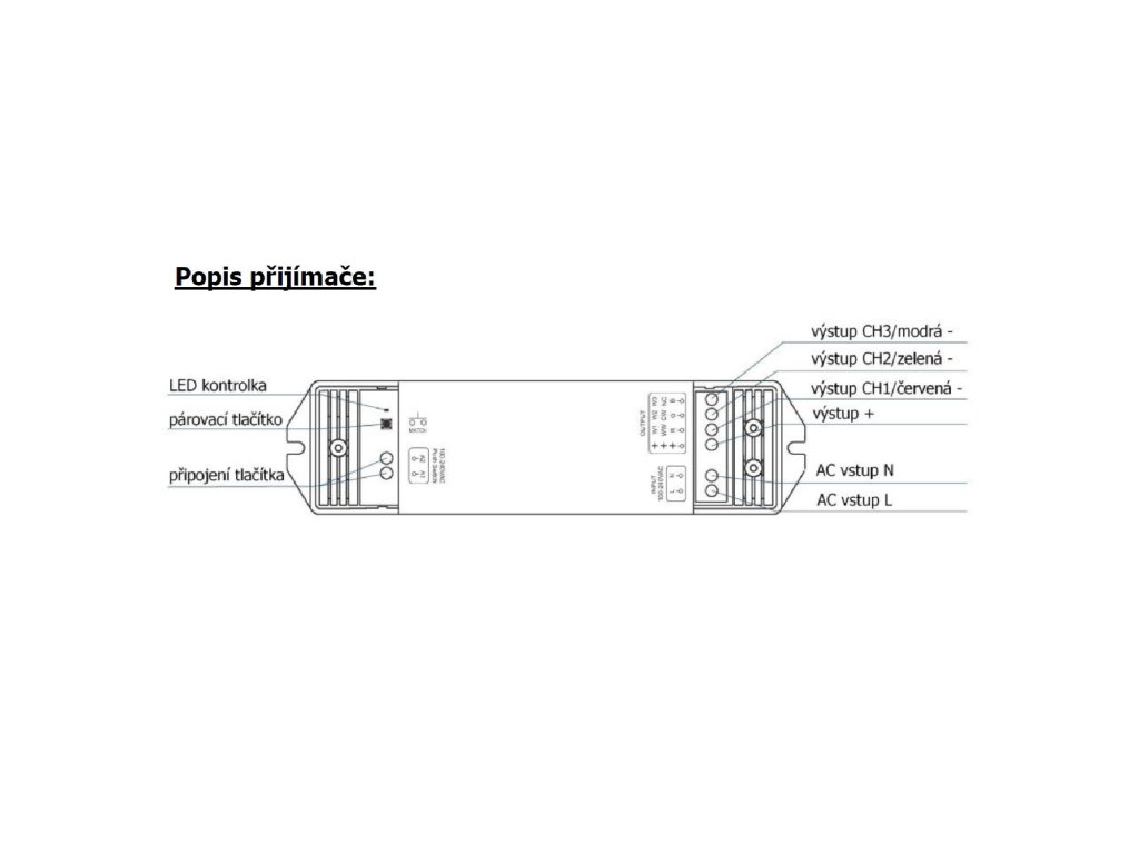 Přijímač je kompatibilní se všemi ovladači řady dimLED, aplikací Tuya, Amazon Alexa (ECHO) a zároveň má přijímač svorkovnici pro připojení tlačítka, kterým lze přijímač manuálně ovládat.