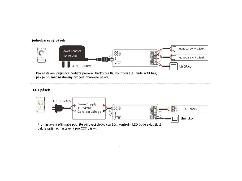 Pro ovládání více okruhů je nutno použít jeden přijímač na každý okruh. Na každý přijímač lze napárovat až 10 různých ovladačů řady dimLED a tak ovládat z několika míst.