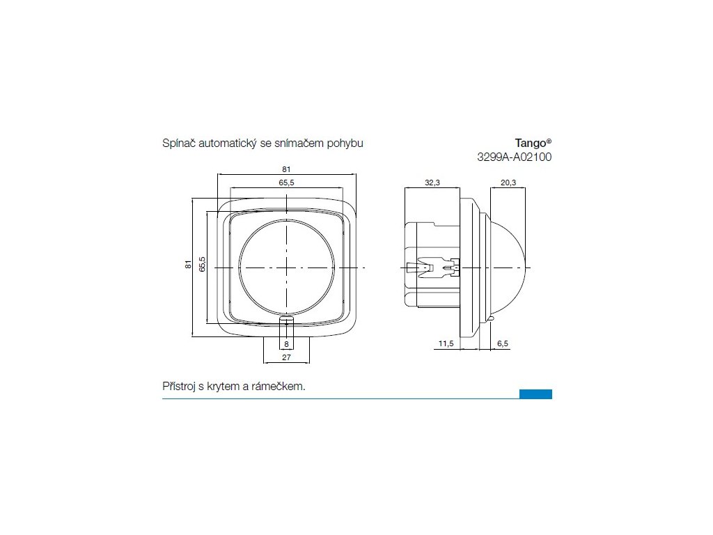 Snímač spínače automatickéhoÚhel pokrytí: cca 120° (přibližně kuželová charakteristika)