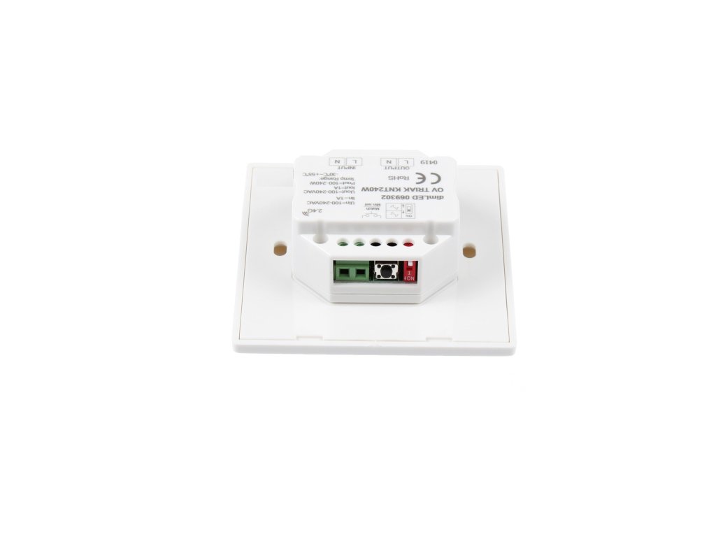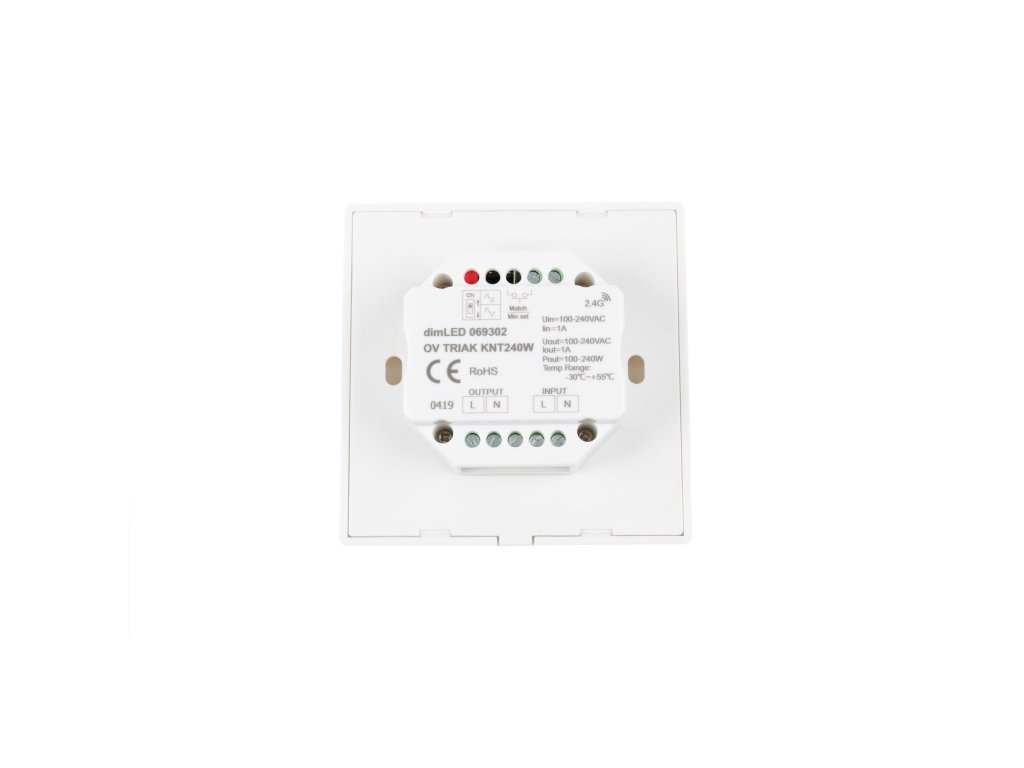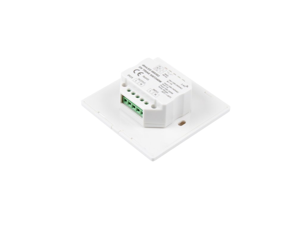 Nástěnný triakový LED stmívač dimLED KNT240W kombinuje vlastnosti přijímače a ovladače. S jedním ovladačem KNT240W lze ovládat 1 okruh, který se může skládat i z několika přijímačů na více místech. Zároveň lze přímo na výstup stmívače KNT240W připojit LED osvětlení a ovladač KNT240W použít i jako přijímač. Ovladačem KNT240W lze tedy ovládat i jiné řady přijímačů dimLED a zároveň k němu lze spárovat jiné modely ovladačů dimLED.
