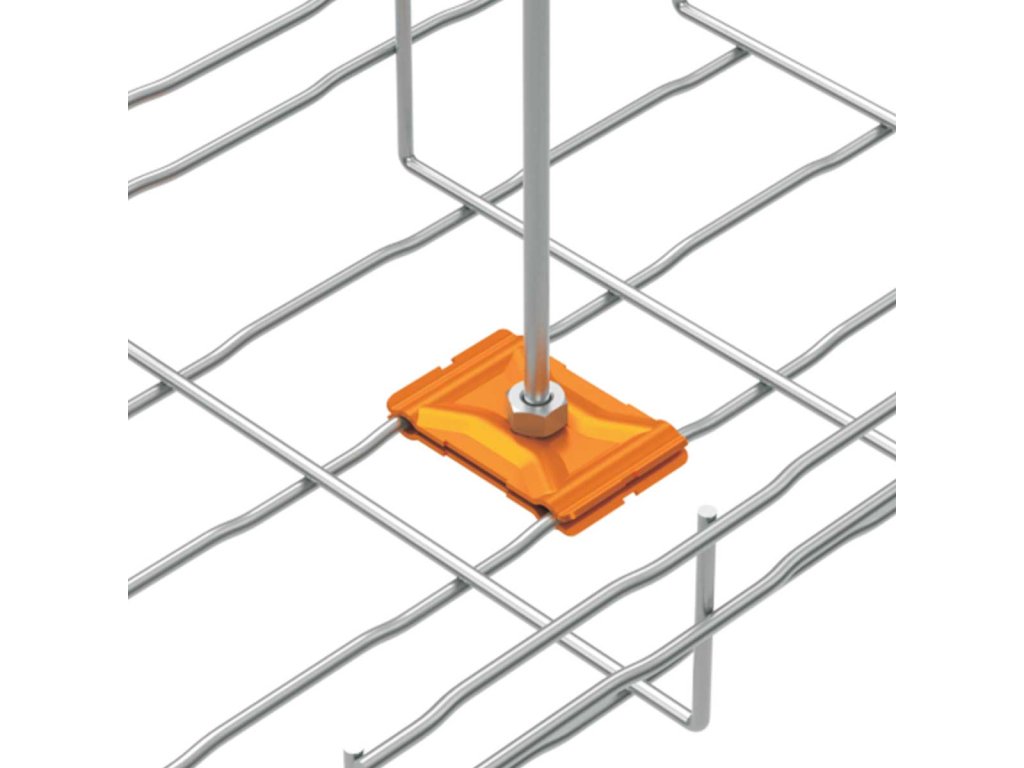 Středový závěs je určen k zavěšení drátěného žlabu ze stropu. K zavěšení je nutné použít dva kusy středového závěsu, dvě matice M 8 a závitovou tyč O 8 mm. Závěs není určený pro zavěšení žlabů DZ 60X60 a DZ 35X150. K vytvoření jednoho závěsného bodu pomocí vnitřního závěsu je třeba objednat 2 ks středového závěsu. Doporučeno pro šířku žlabů max. 300 mm.